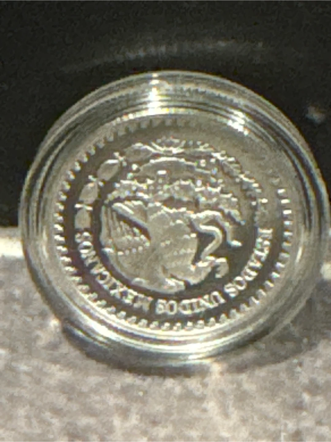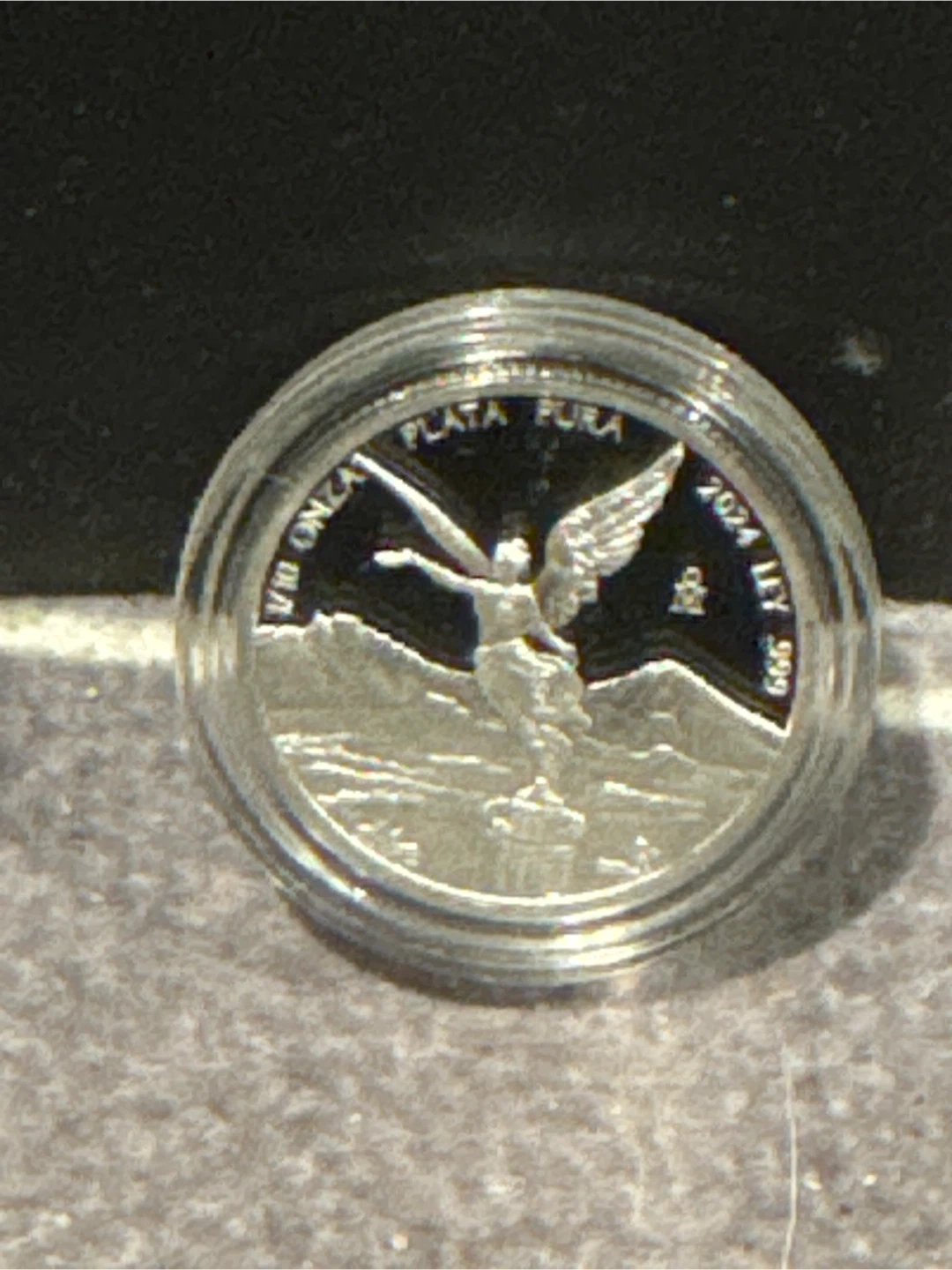 1/10 This is a 2024 "Plata Pura" (Pure Silver) coin from Mexico. It's a one troy ounce (VII ONZA) coin, stamped with 999 purity. The obverse features the Mexican coat of arms.
