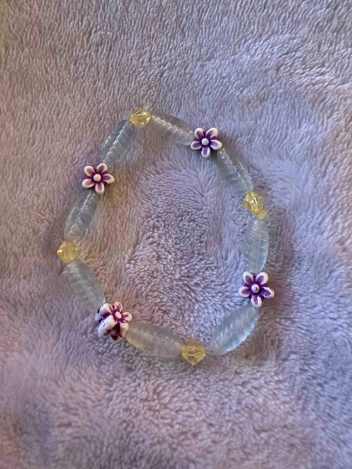 Pink flower beaded bracelet