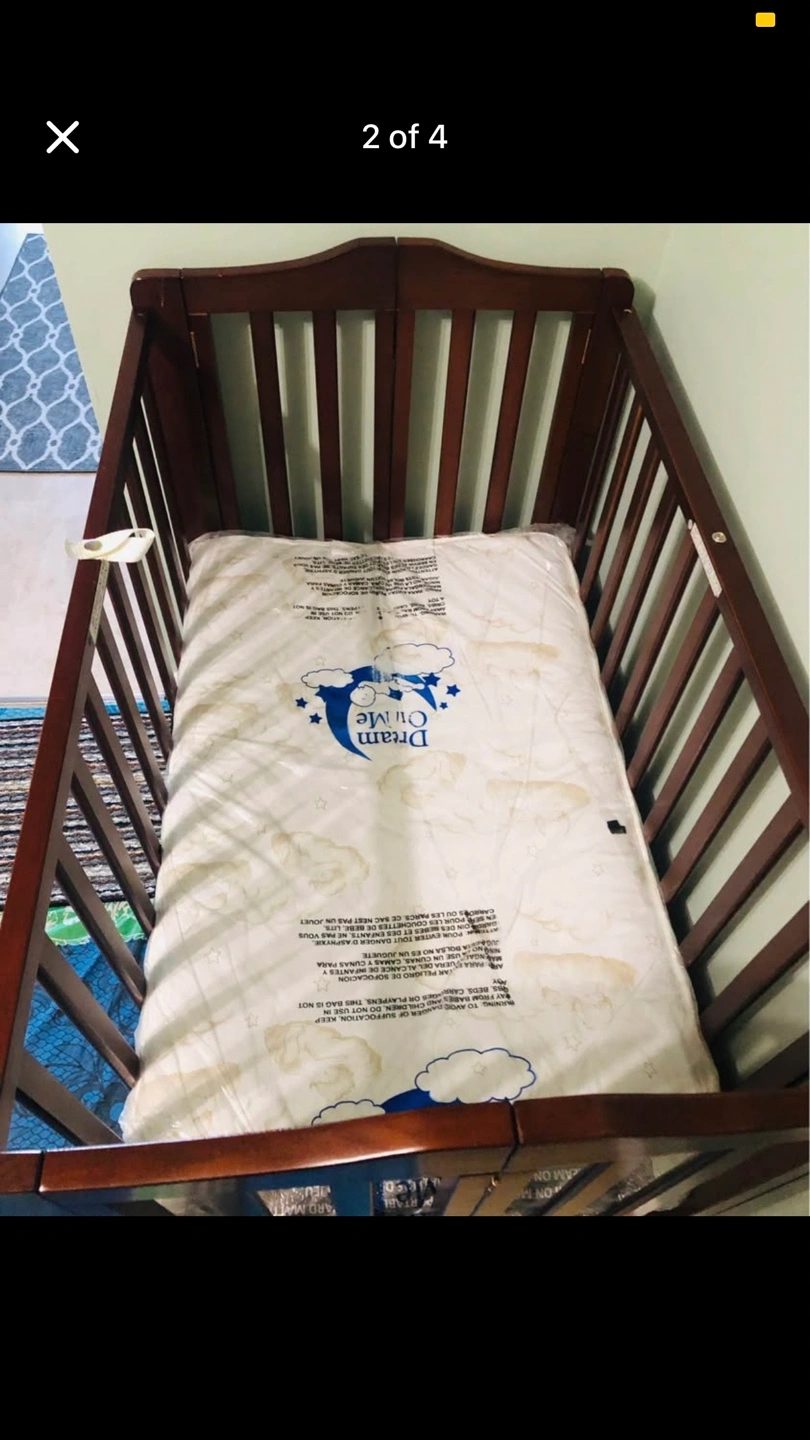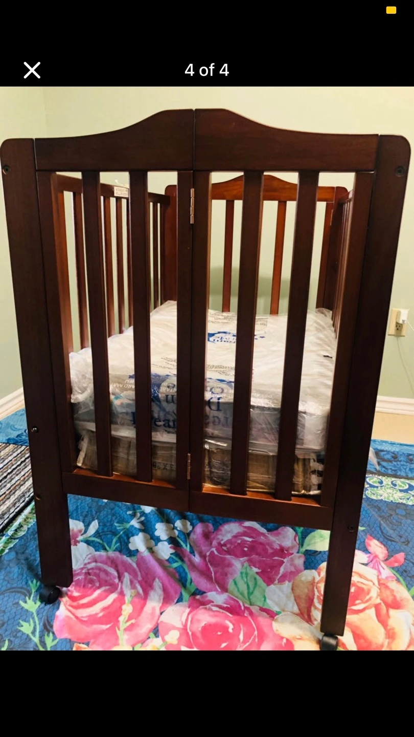 Selling a Dream On Me folding crib! It's in great condition and comes with the mattress. Perfect for saving space and easy storage when not in use. It's already assembled and ready to go!