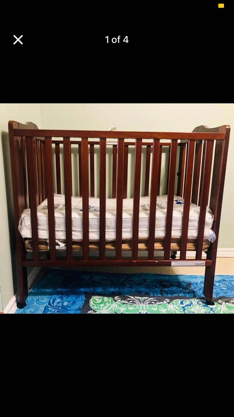 Selling a Dream On Me folding crib! It's in great condition and comes with the mattress. Perfect for saving space and easy storage when not in use. It's already assembled and ready to go!