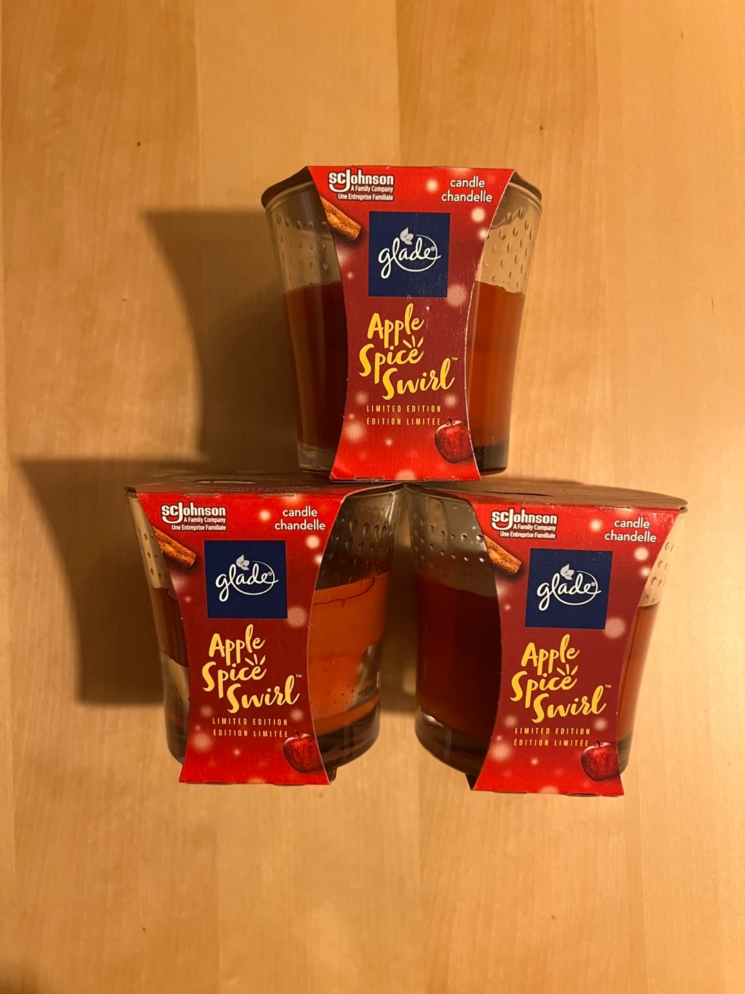Selling three Glade Apple Spice Swirl candles - brand new and never lit!