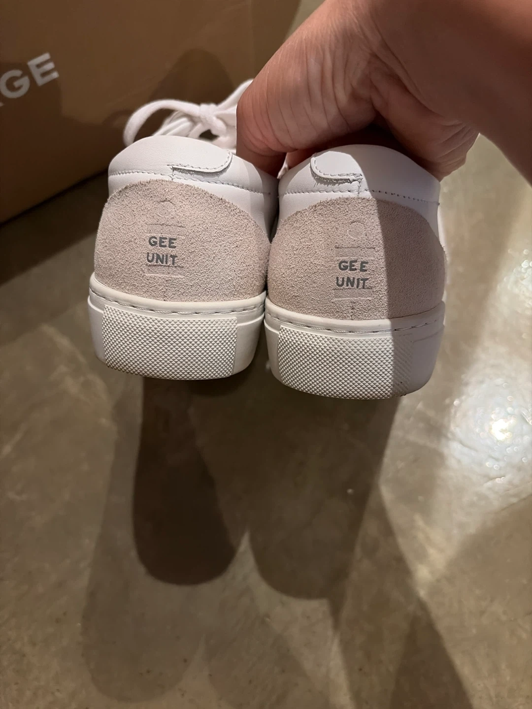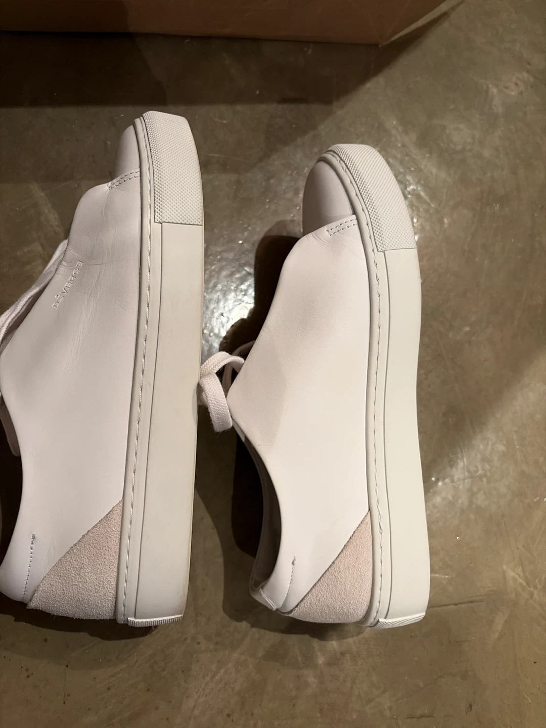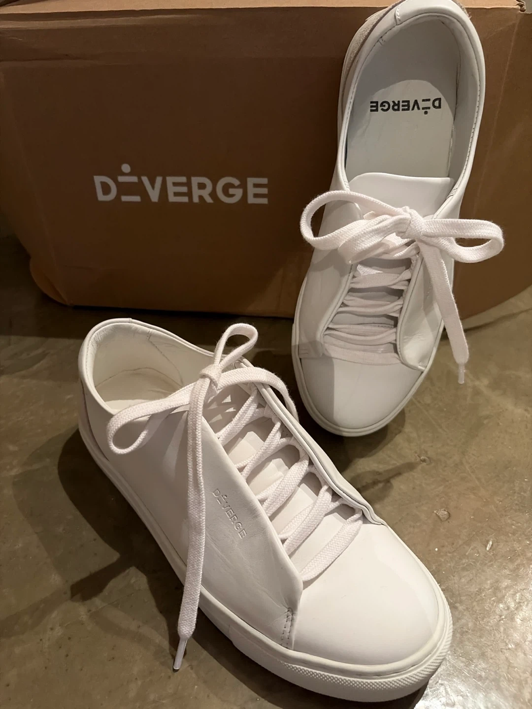These are white leather Diverge sneakers (made from Portugal) with a suede accent. They're a size 38. Comes with original box. Worn twice but they are a bit narrow (I have bunions) so they pinch my little toes. They retail over $250 usd. Just want the to find a new home. In excellent condition. Check photos. No marks or dirt other than the bottoms of the shoes that worn twice.