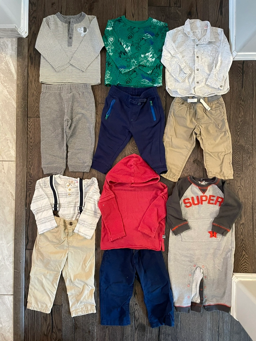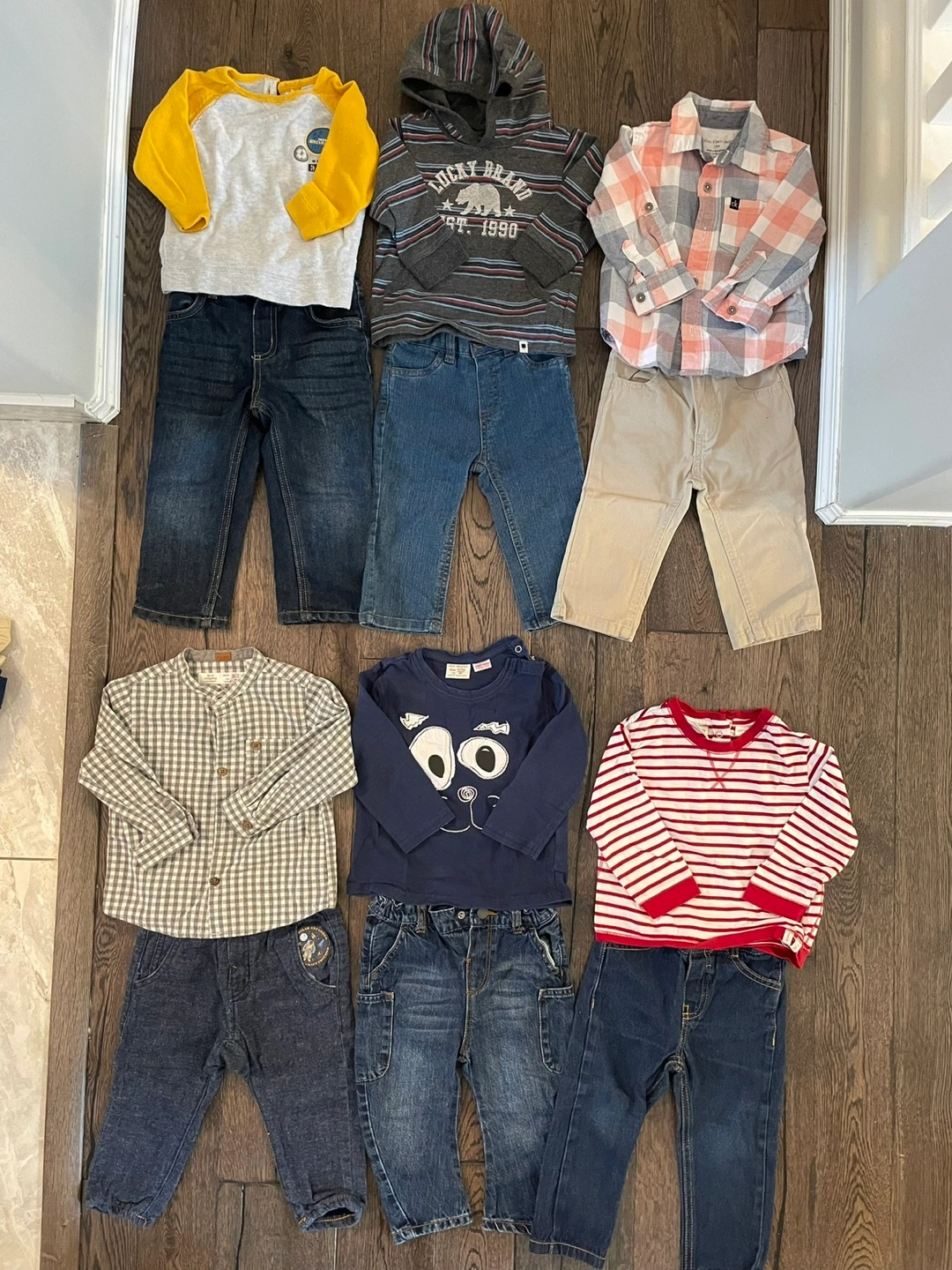 Huge lot of beautiful 12-18M baby boy clothing in EUC including brand-names Zara, Calvin Klein, Nike, Champion, Puma, Carter’s, Levi’s, Lucky Brand. From a clean, smoke and pet-free home.