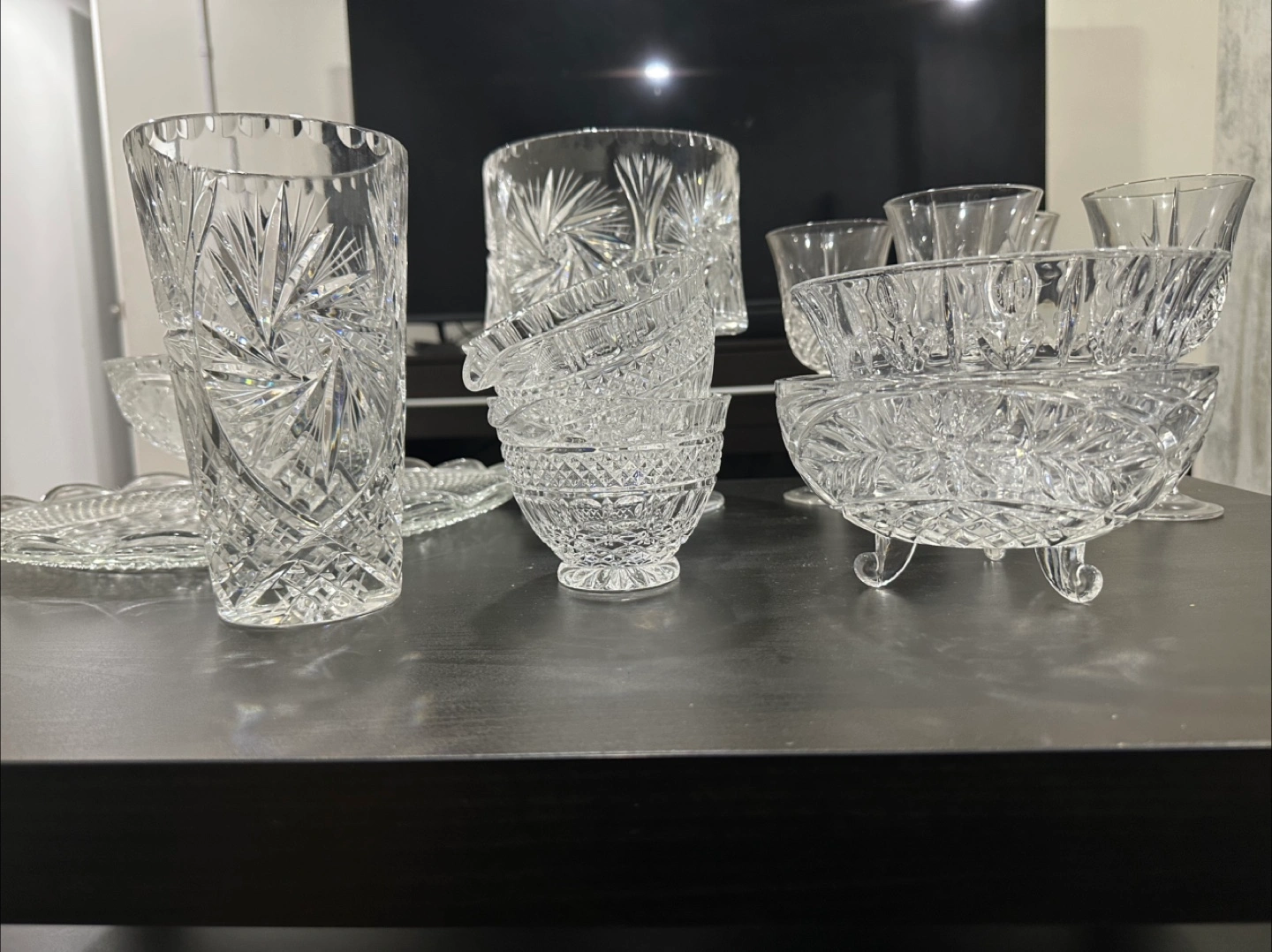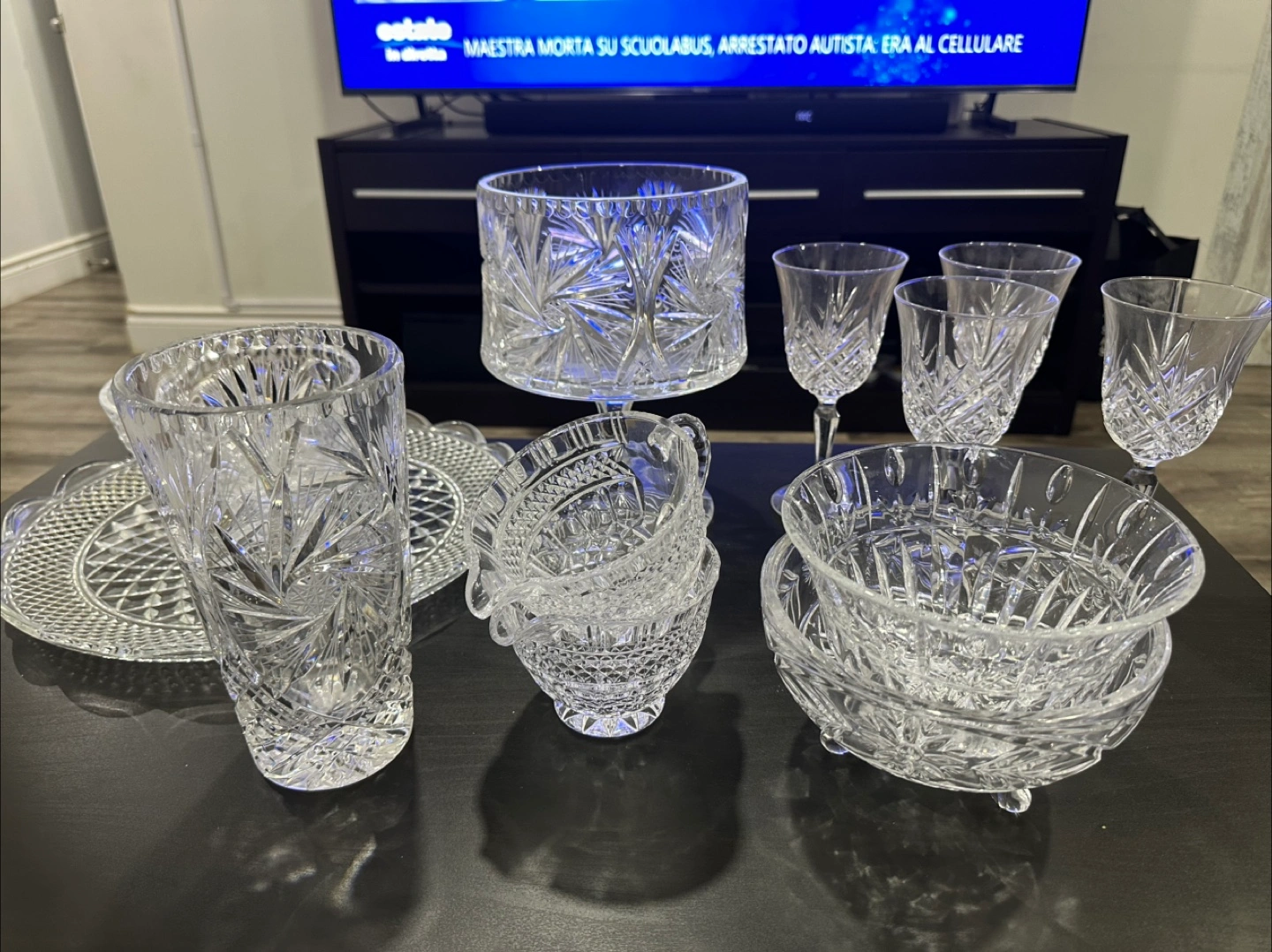 Selling a beautiful set of crystal glassware. Includes a variety of pieces, perfect for adding a touch of elegance to your table setting. They're in great condition and ready for a new home!