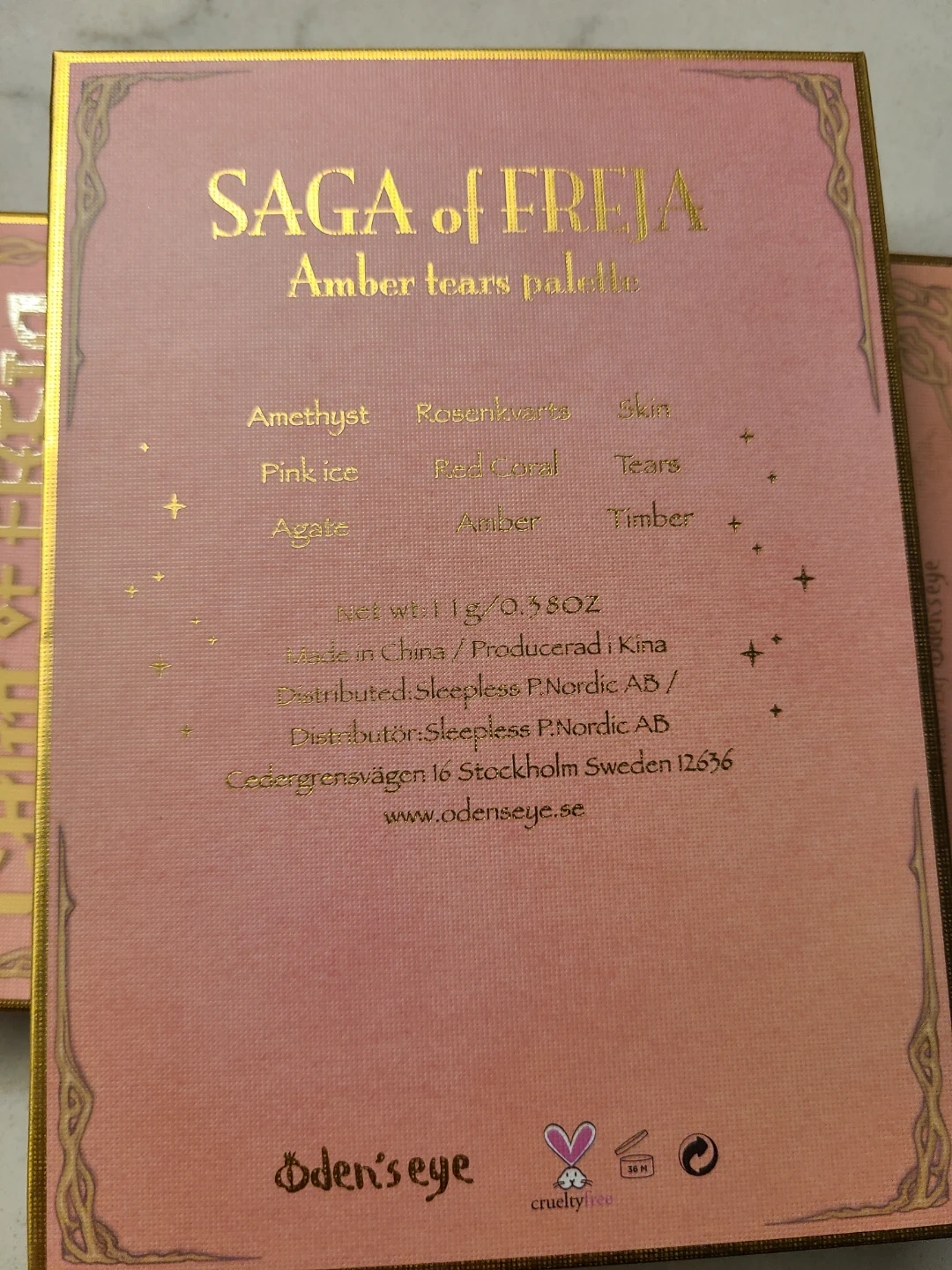 Oden's Eye Saga of Freja Amber Tears palette. It features nine shades of eyeshadow.