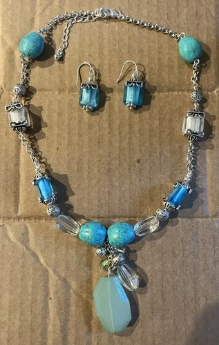 Buy & SellSilver Toned Beaded Necklace And Earring SetSilver Toned Beaded Necklace And Earring Set$13Silver toned beaded necklace with green, blue, clear, and faux turquoise stones.WHERE TO MEETCheck LocationView MapSELLERverifiedDianaSelden650 reviews0 chats·0 favorites·0 viewsSEND CHAT TO SELLERHi Diana! I’m interested in your listing.Hi Diana! I’m interested in your listing.Get the Karrot app to chatSign In to chat