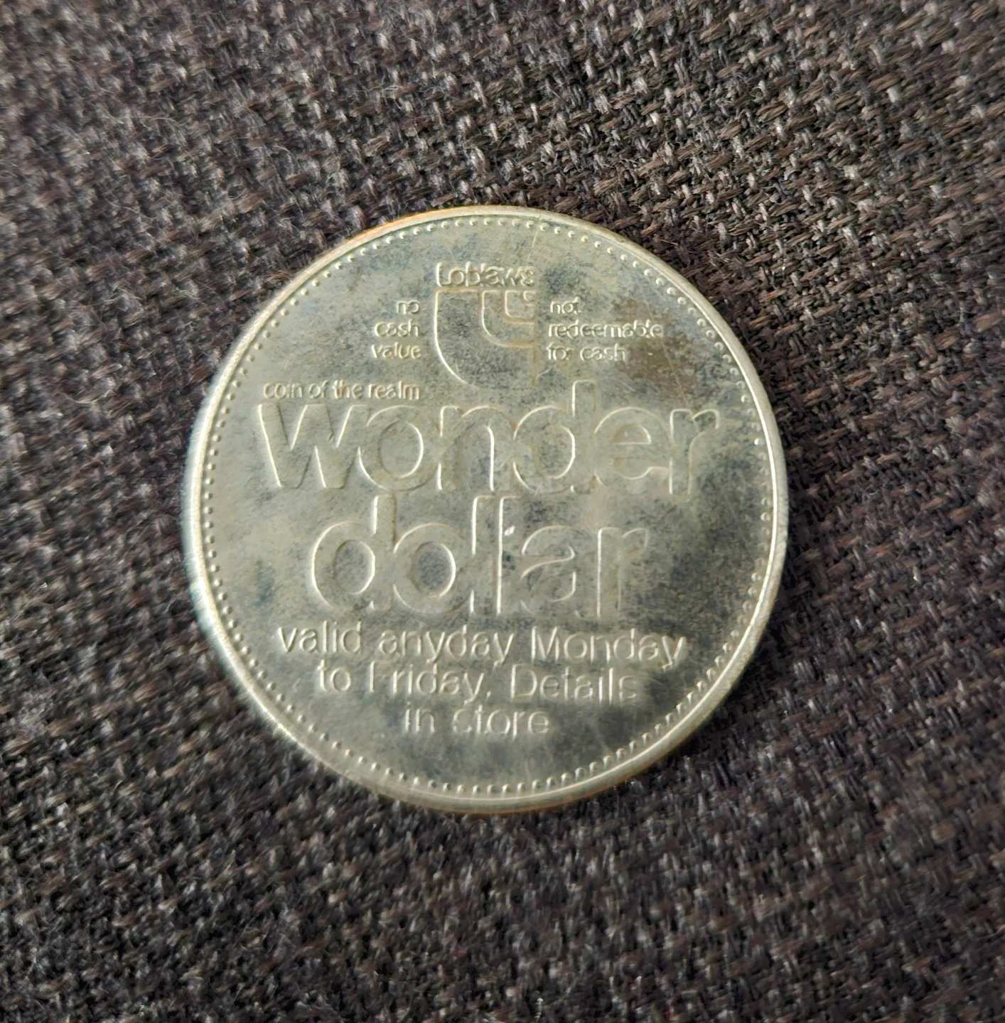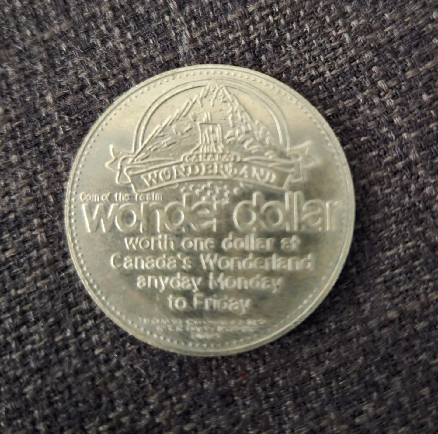 The 1981 Canada's Wonderland "Wonder Dollar" is a commemorative trade token, issued in partnership with Loblaws, designed to be worth one dollar at the theme park from Monday to Friday...Likely no longer valid.