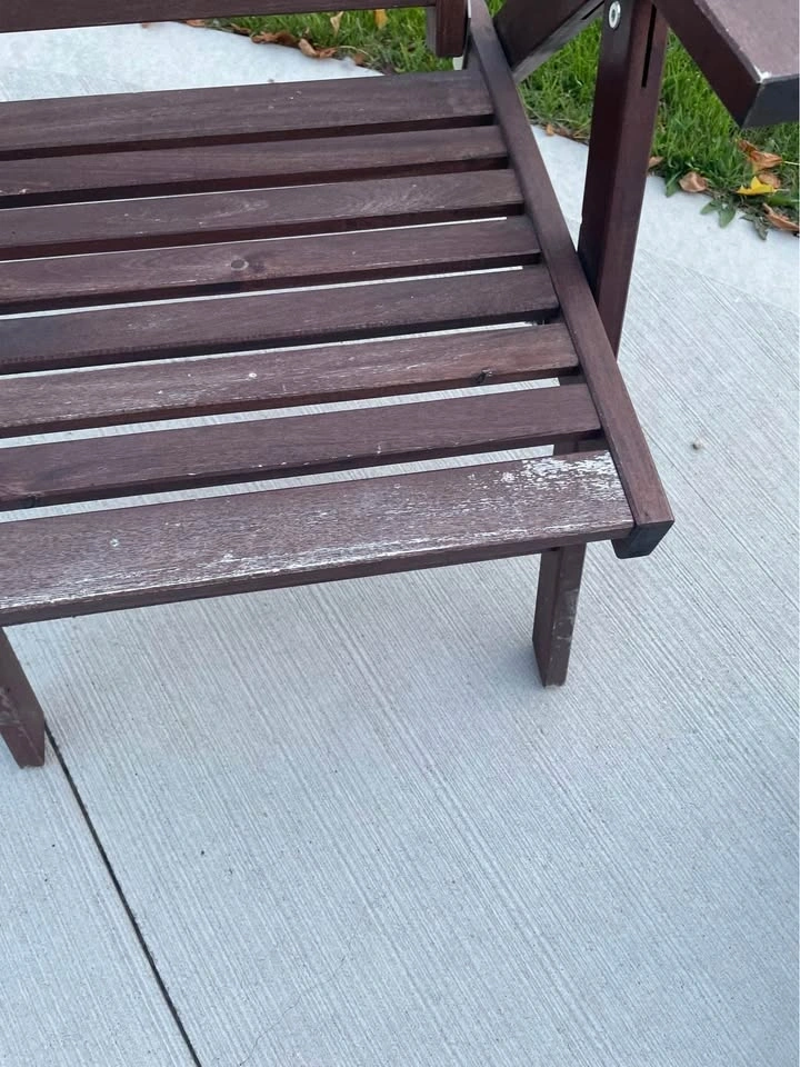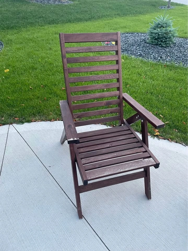 Older style of the NÄMMARÖ Reclining chair. Chair still works but could use a new coat of stain as it has been weathered a bit. Pickup is on West St Paul.