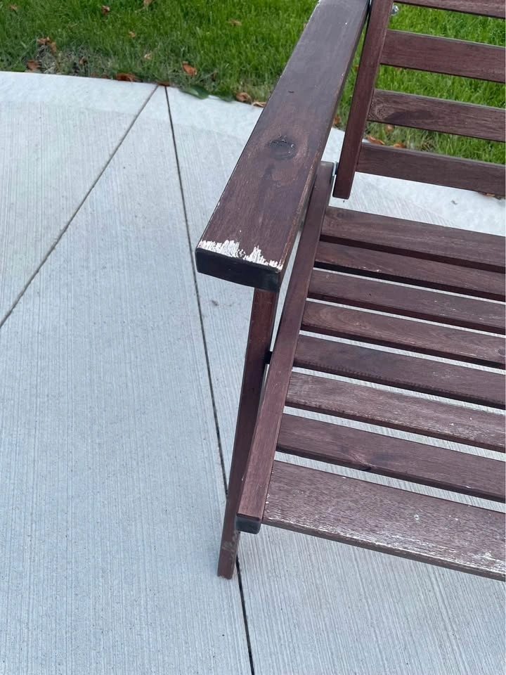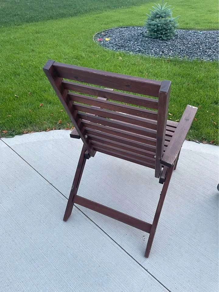 Older style of the NÄMMARÖ Reclining chair. Chair still works but could use a new coat of stain as it has been weathered a bit. Pickup is on West St Paul.
