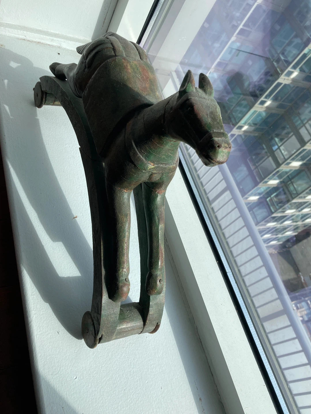 Selling a vintage wooden rocking horse decoration! It has a rustic, antique look and would be a charming addition to any room. Perfect for adding a touch of nostalgia to your home decor