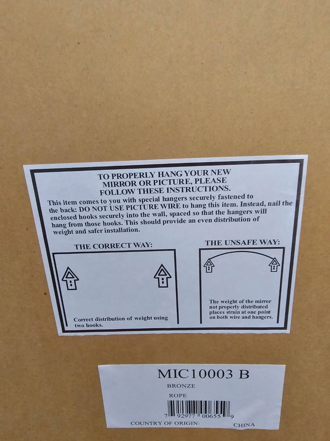 Decorative mirror with a bronze rope frame. Includes hanging instructions and hardware. This mirror's distressed bronze finish adds a touch of rustic charm to any room.