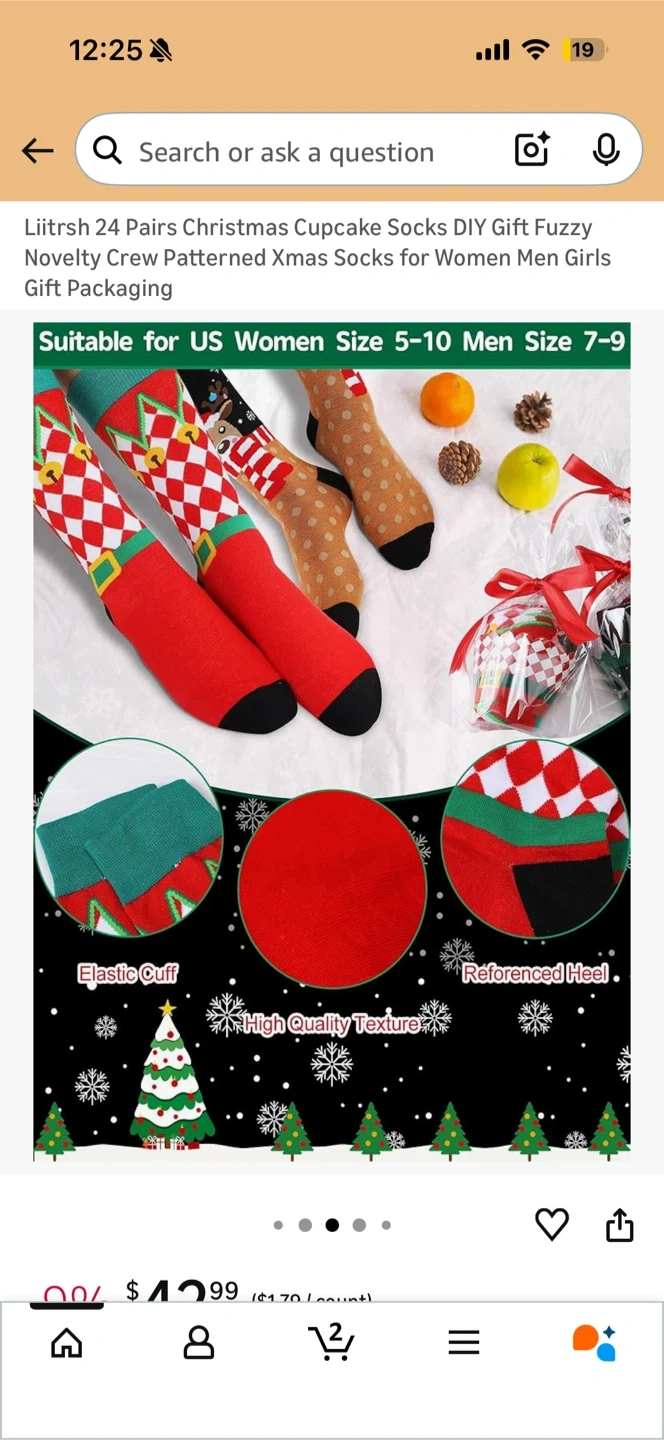 This set includes 24 pairs of novelty Christmas crew socks in 12 designs. Suitable for US Women size 5-10 and Men size 7-9. Packaging materials for DIY gift wrapping are included. Makes a fun holiday gift!