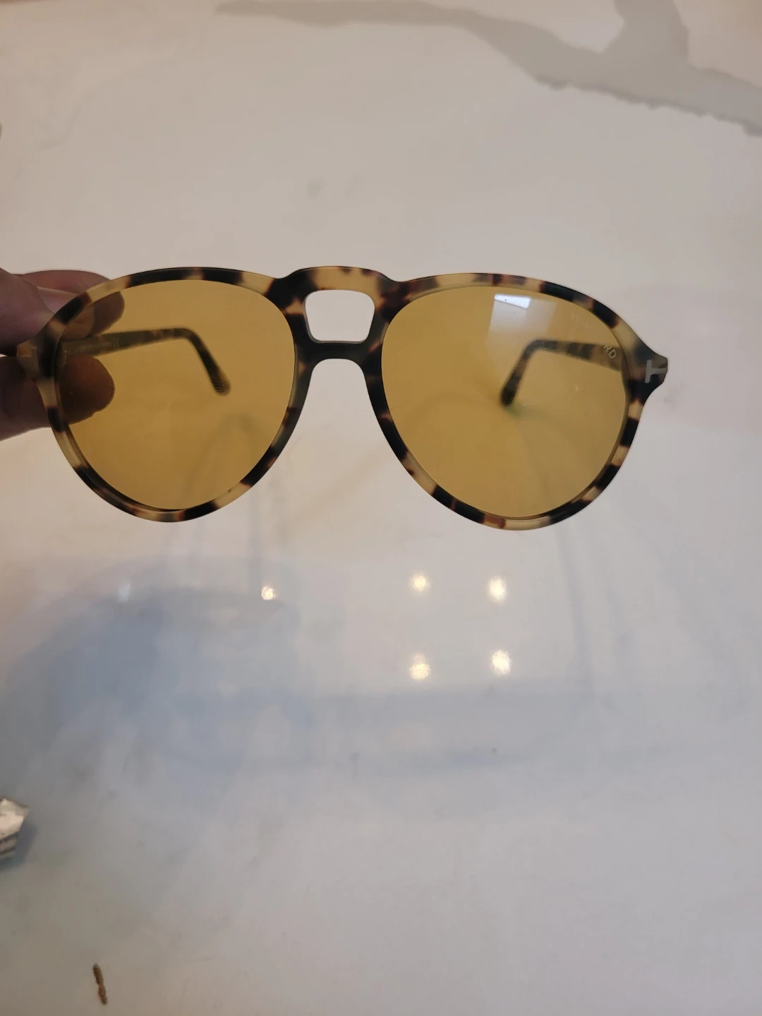 These are Tom Ford LENNON-02 sunglasses. They feature a tortoise shell frame and amber lenses. The frame measures 56mm lens width and 17mm bridge width.