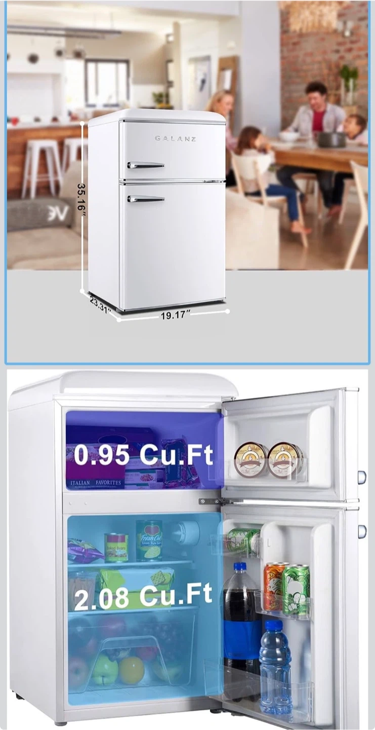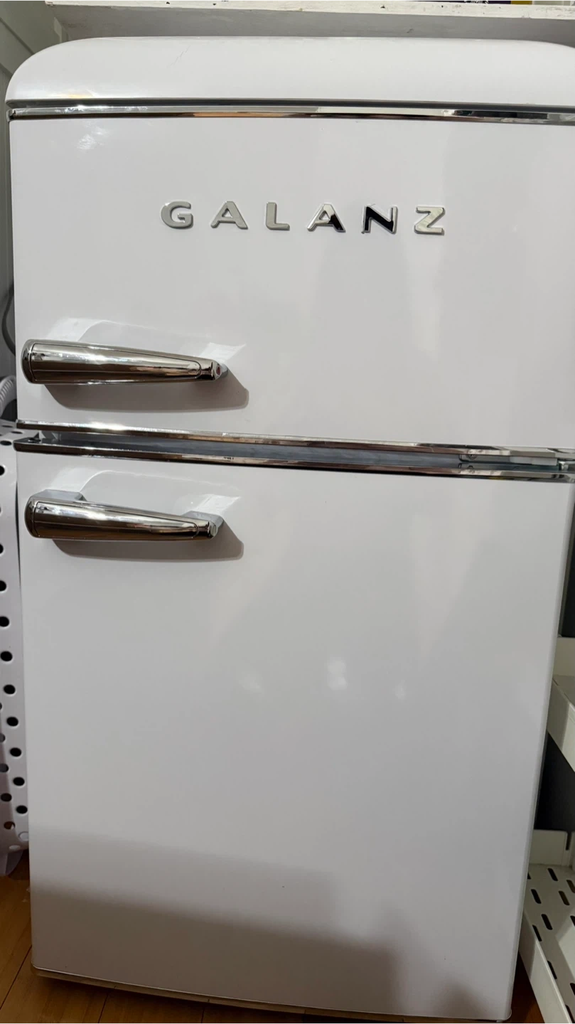 Galanz 3.1 Cu Ft Retro Compact Refrigerator (White) Super cute retro style! Used less than a year. ✔️ Dual doors (separate freezer) ✔️ Adjustable thermostat ✔️ Compact but spacious Minor scratches but in very good condition. Moving out tomorrow — priced to sell! Pickup only. Message me if interested!