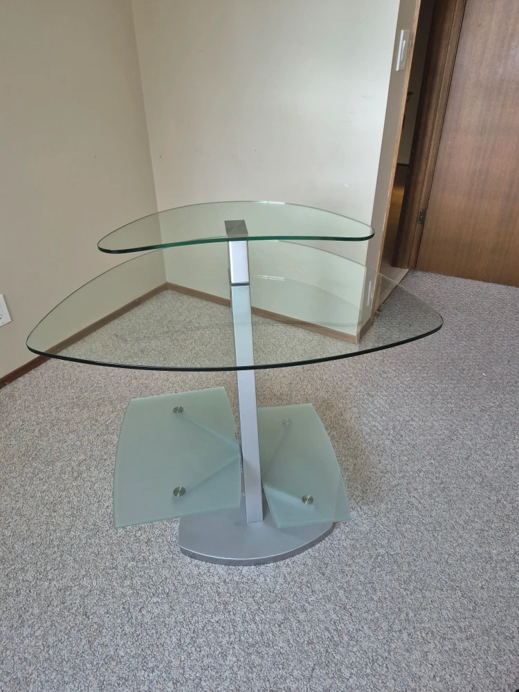 pick up only (bonnie doon neighborhood) $50 OBO tempered glass computer desk perfect for corners or smaller spaces. high quality smooth glass. VERY HEAVY and awkward to move MUST bring a friend to help move it, i can help load it but you will need assistance unloading! need gone by march 31st!!!