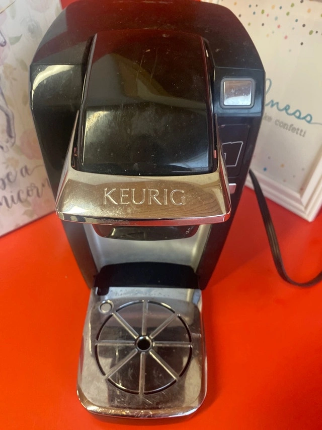 Brew your perfect cup with this Keurig single-serve coffee maker, ideal for quickly making coffee, tea, or hot chocolate. This is a used machine. It needs a bit of a wipe down but works perfectly. Single-serve brewing, compact design, multiple cup size options. Grab this Keurig and elevate your coffee game! If the ad's still up, the Keurig is ready for a new home. Cash accepted.
