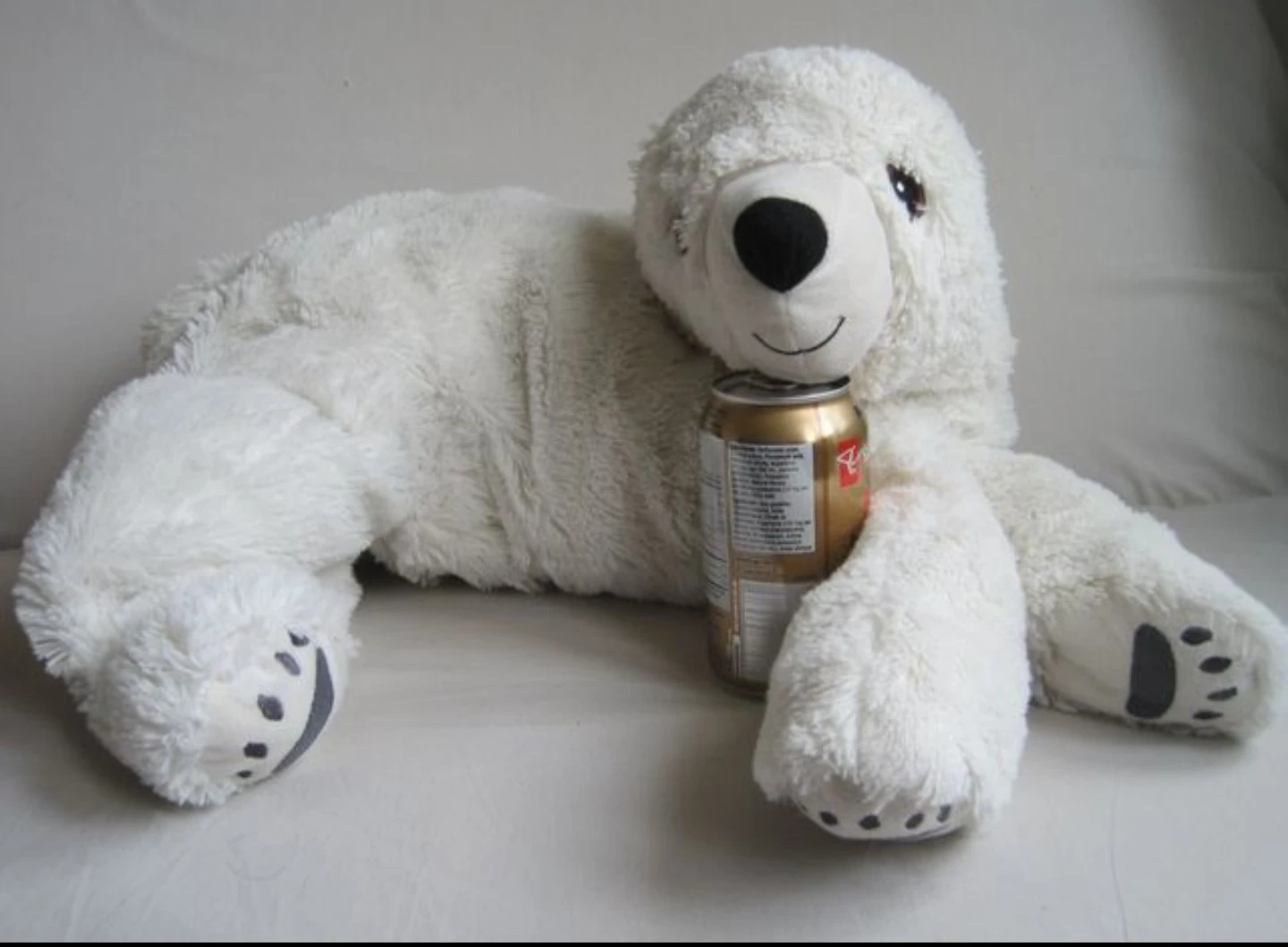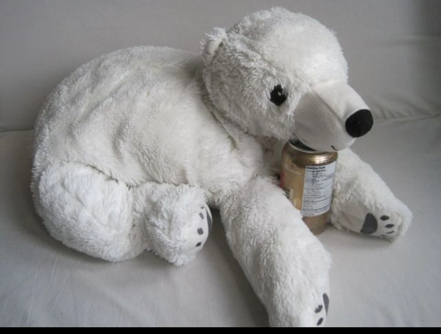Giant Plush Polar Bear available. Pop can for scale. Firm price.