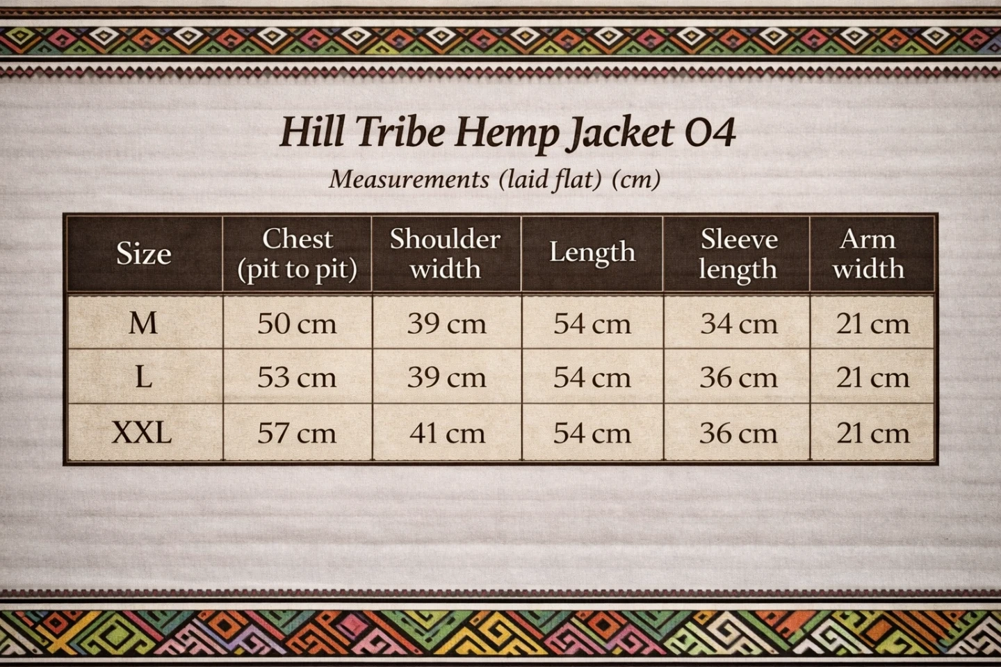 This ethnic-inspired jacket is crafted from natural hemp fiber, featuring intricate geometric embroidery.