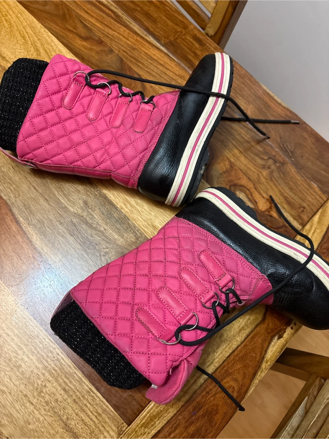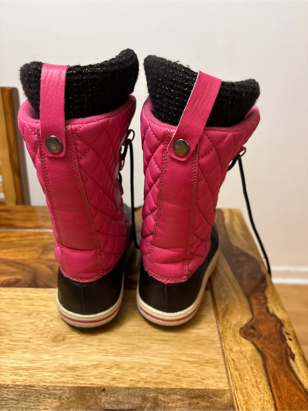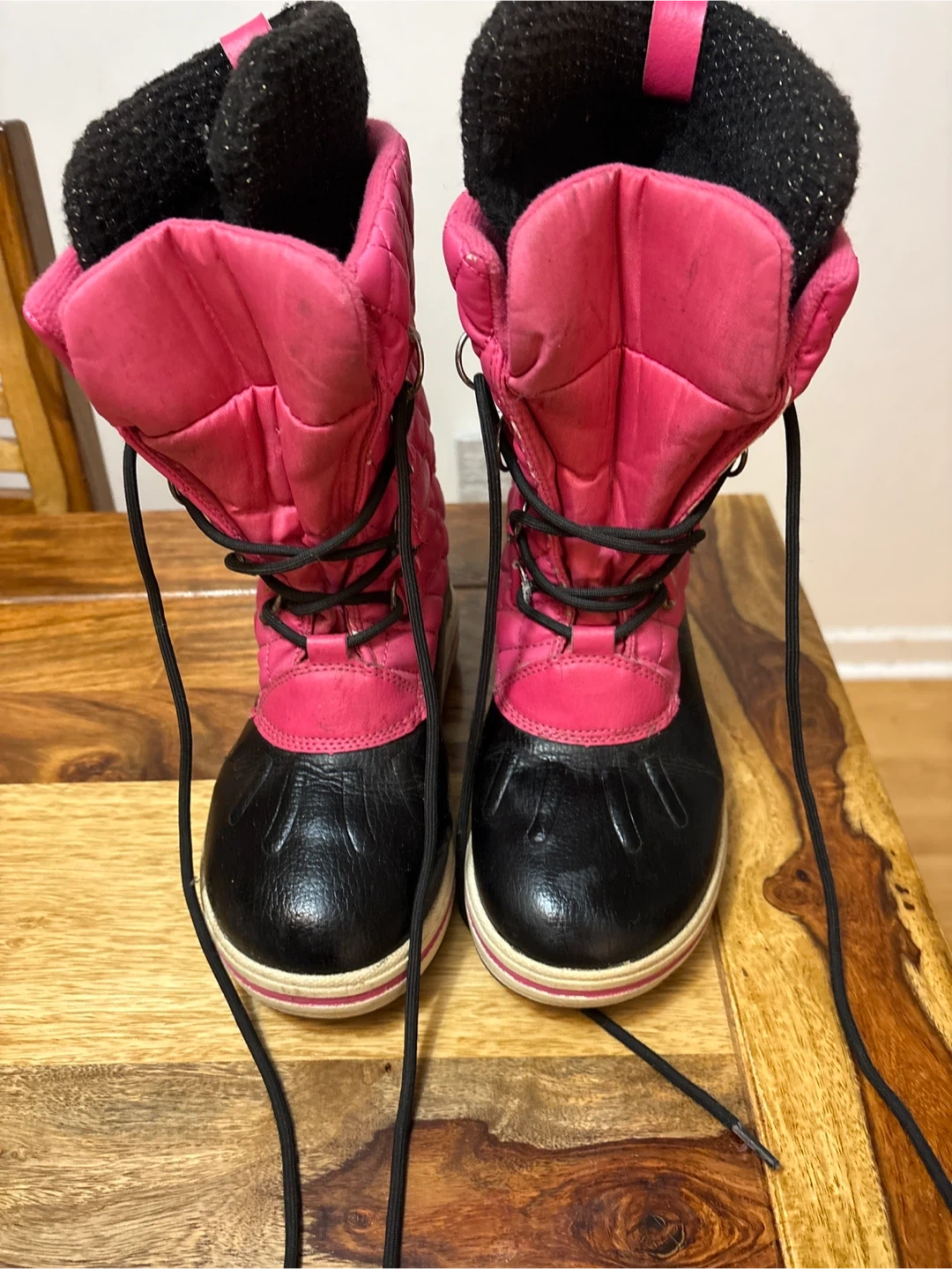 Selling a pair kids winter boots in pink and black. They are in EU size 32, which is a US size 1. Perfect for keeping your child’s feet warm this winter!