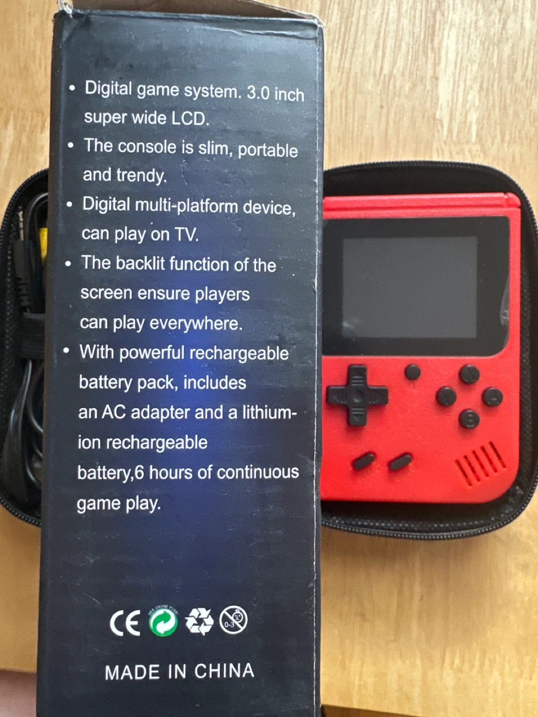 Selling a handheld game console! It's in like-new condition and comes with all the original components and box. It features a 3.0 inch super wide LCD screen and can be connected to a TV. The console is slim, portable, and trendy for gaming on the go!