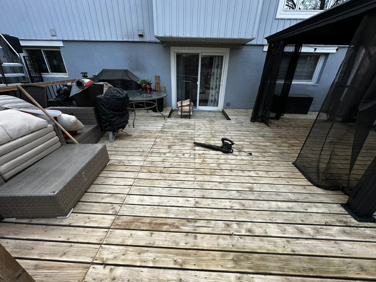 Transform your outdoor space with a professional deck refinishing service! We clean, sand, and stain your wood deck, bringing back its natural beauty and protecting it from the elements. Enjoy your deck all season long!