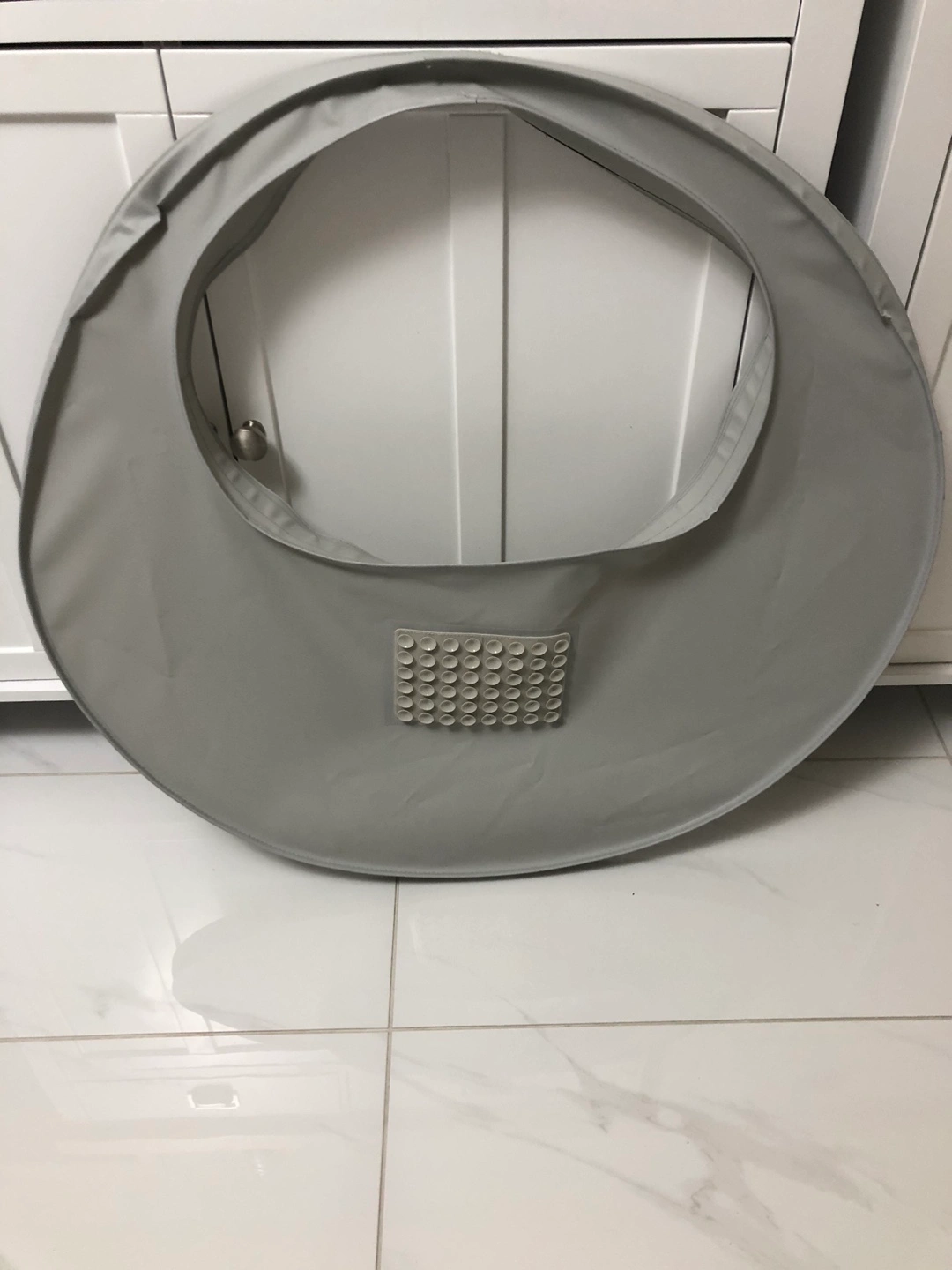 Portable, easy-to-clean baby feeding suction tray for highchair. Idea for baby led weaning. Suctions to highchair to avoid food being thrown on the ground. Grey colour. Great for travel or home use. Attaches easily to high chair.