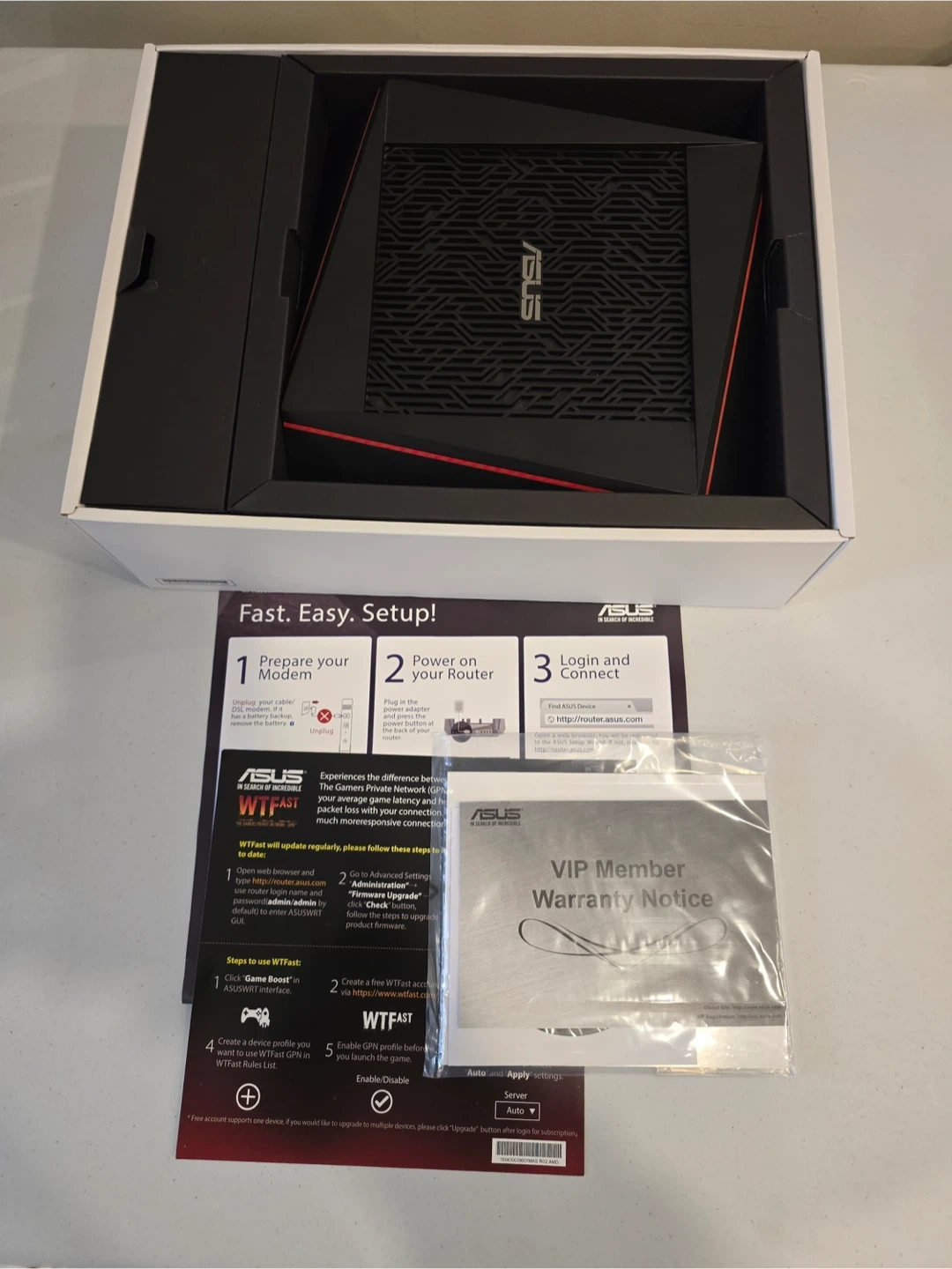 This ASUS RT-AC5300 router is tri-band for extreme Wi-Fi performance. It's designed for gaming, 4K streaming, and demanding home networks. It comes with an original box and all accessories.