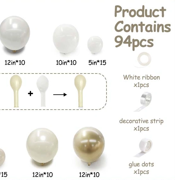 - 12inch x 10pcs double stuffed pearl white balloons(matte white in pearl white)