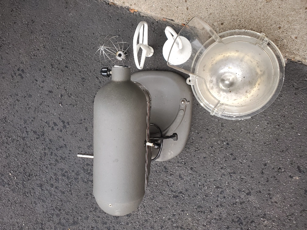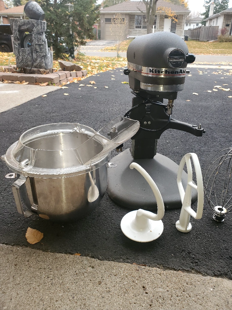 KitchenAid stand mixer with bowl, splash guard, dough hook. Solid state speed control, 10 speeds.NOT TURNS STOP WORKING DOESN'T SMELL BURNED good for handyman can fixed