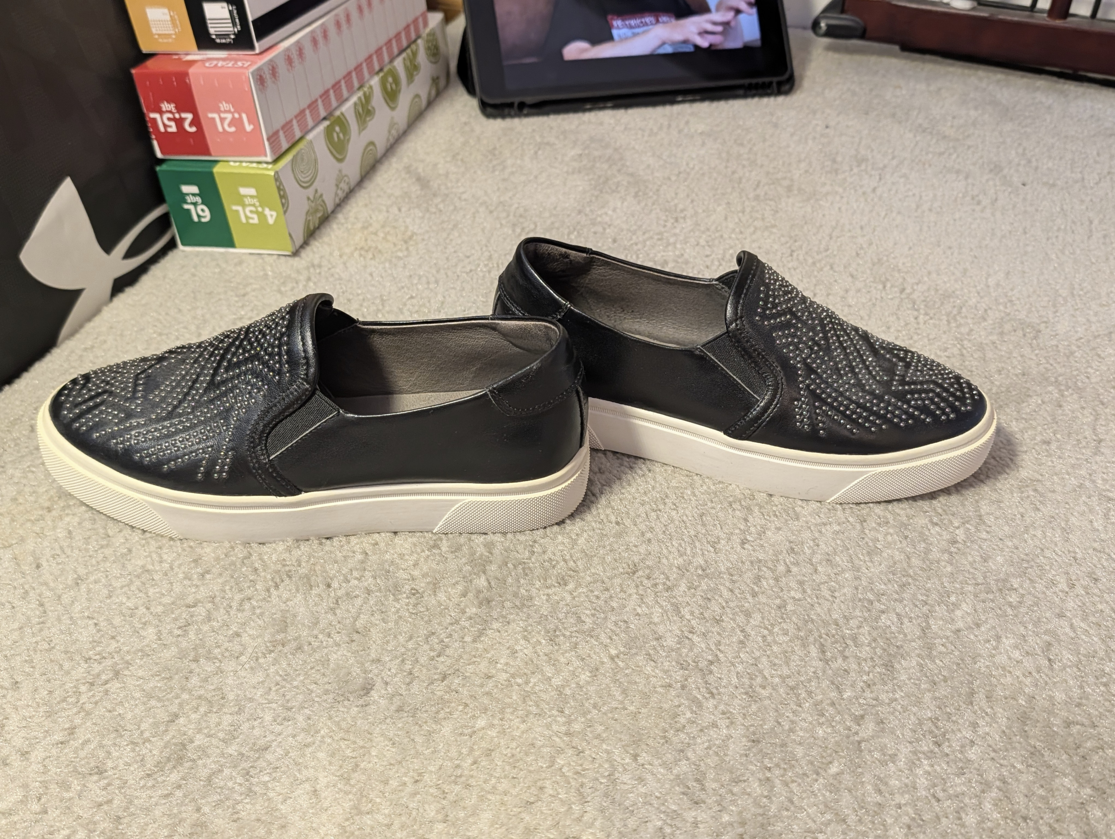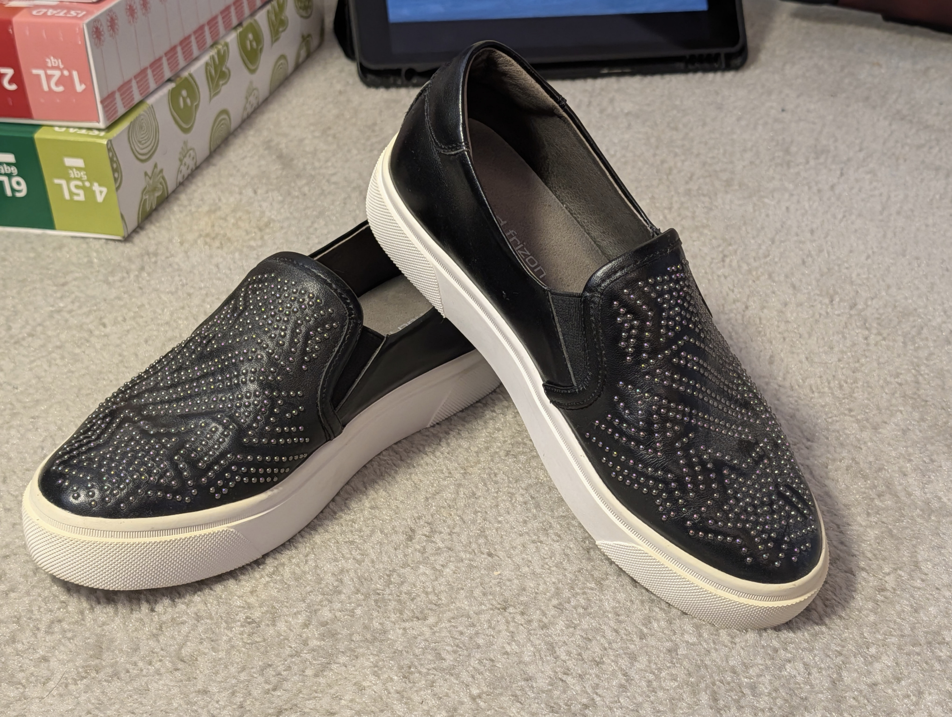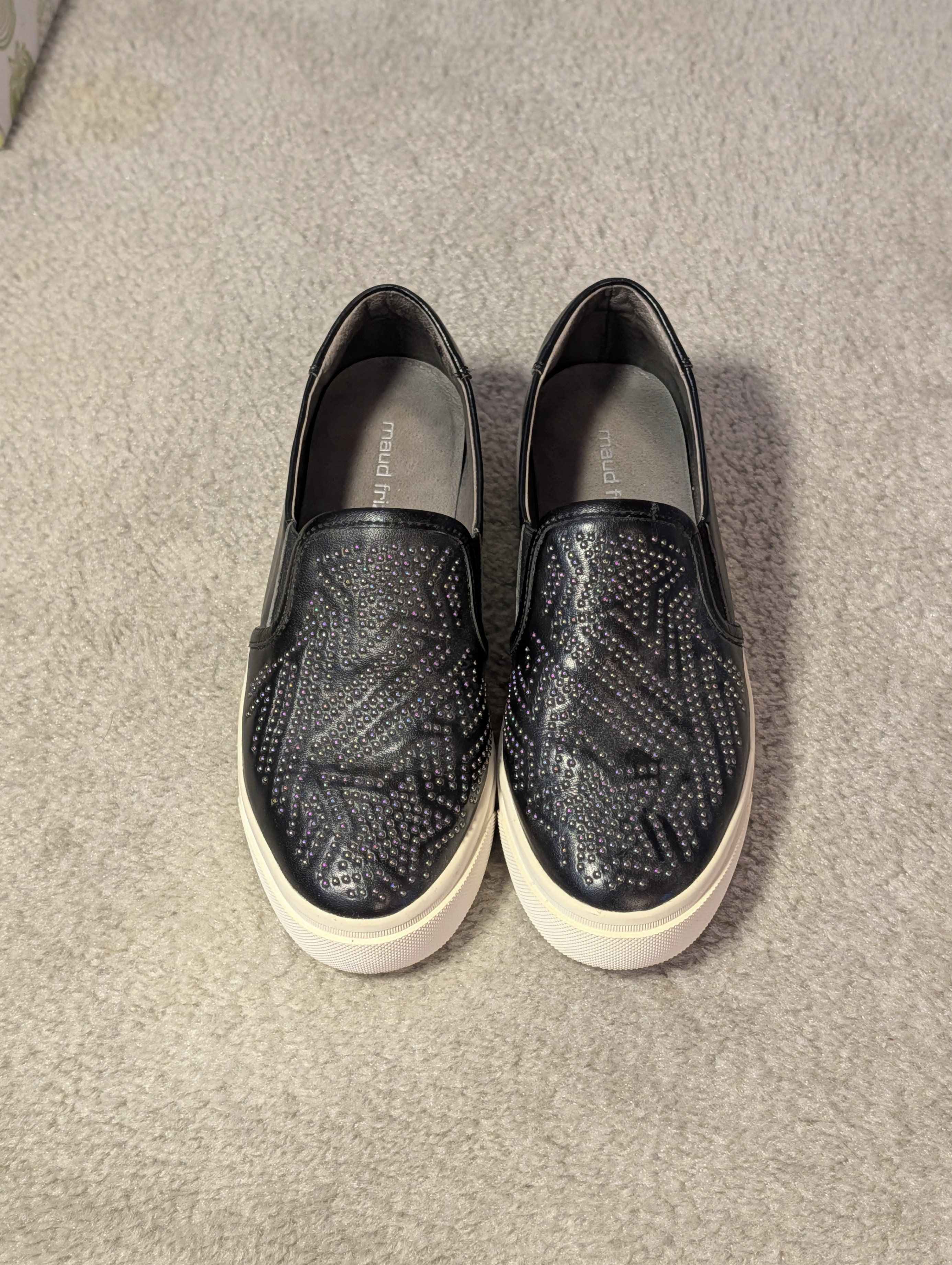 Lightly used women's slip-on loafers with rhinestone star pattern. Women's size 6.