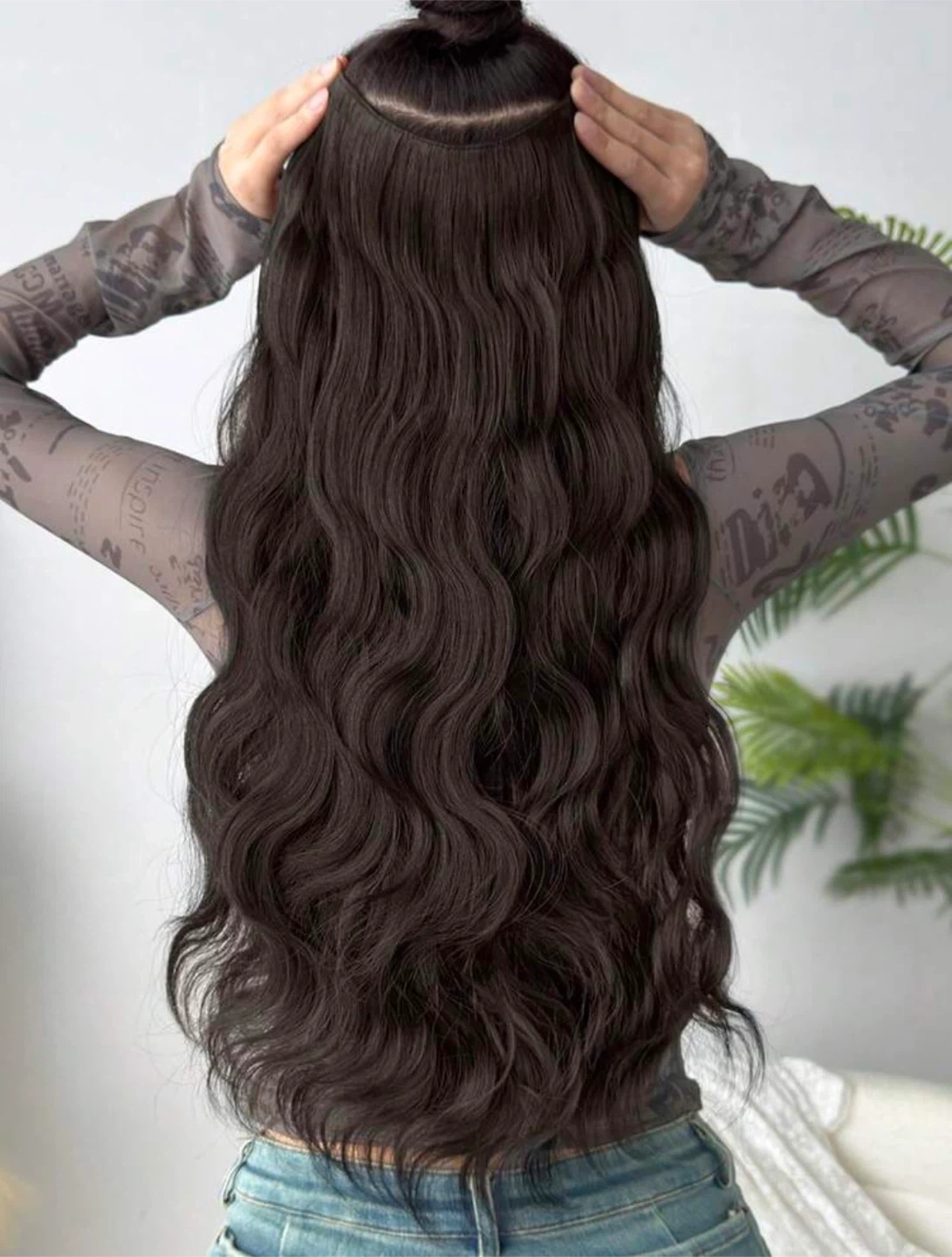 U- shaped clip in hair extensions, brown black mixed color, 22 inches long and natural wave curly hair