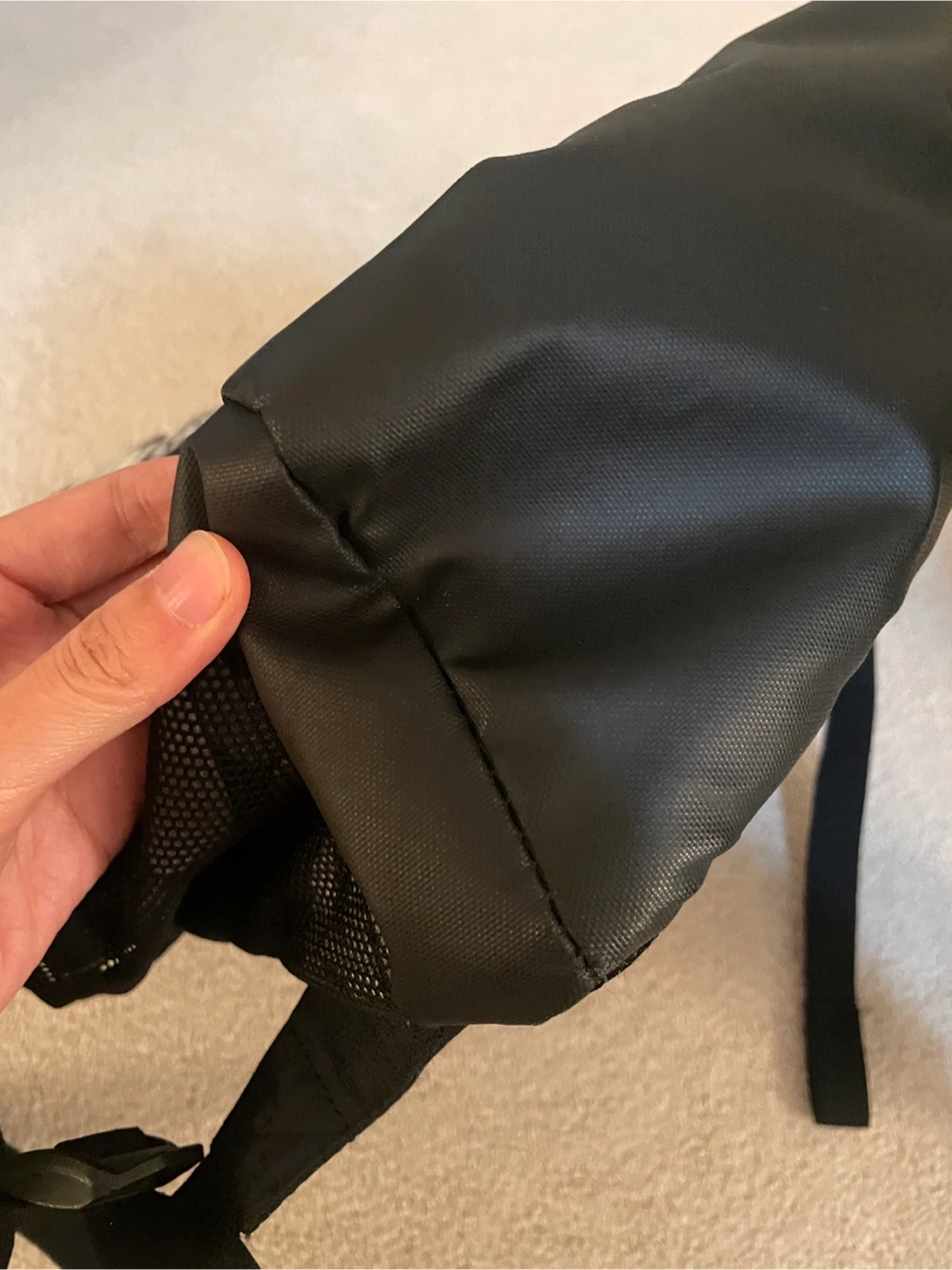 Nike backpack with a black and grey pattern. It features the Nike logo and has side pockets for water bottles or other items. Great for school, sports, or everyday use!