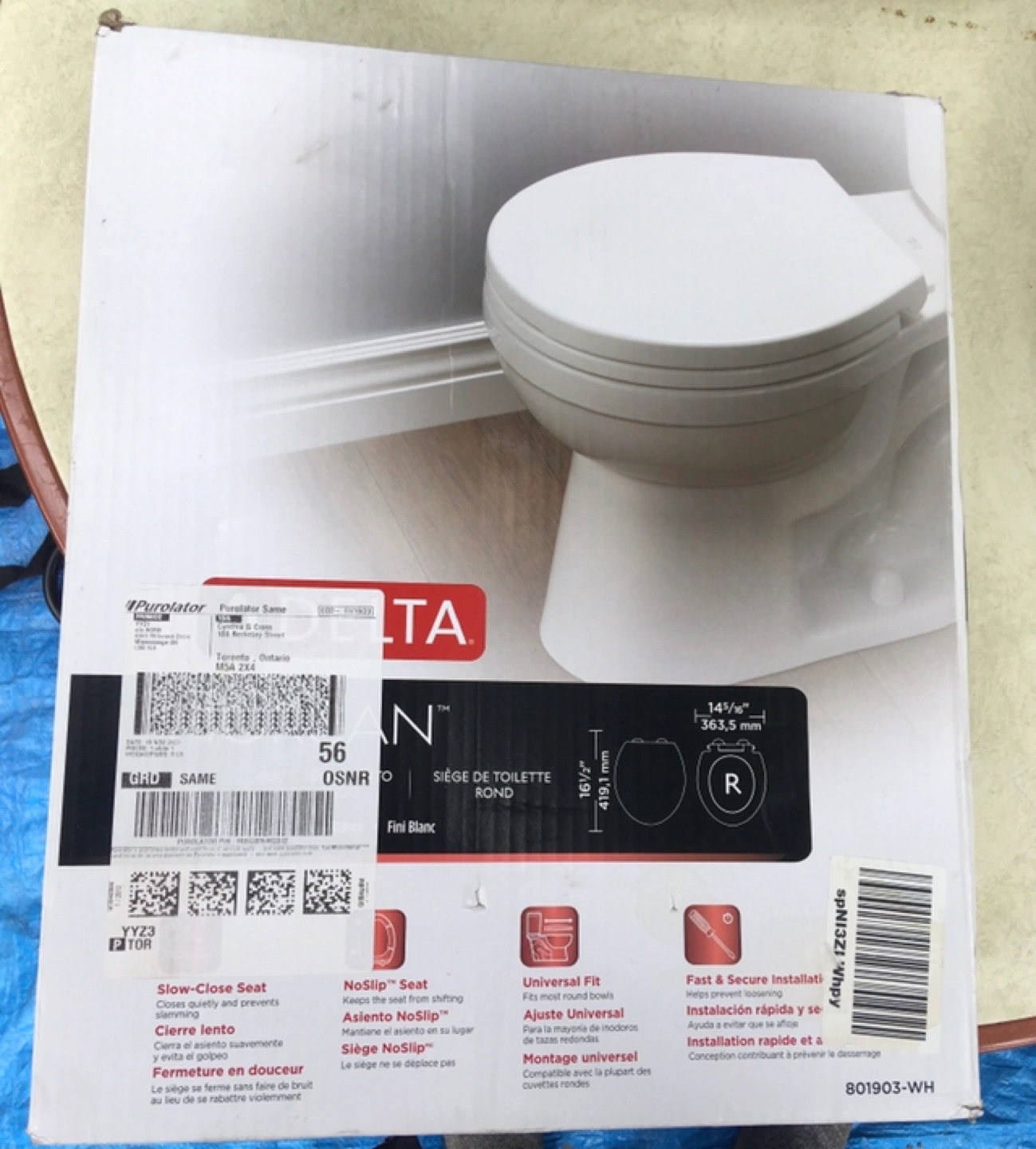 Selling a brand new Delta toilet seat! It features a slow-close seat that closes quietly and prevents slamming.
