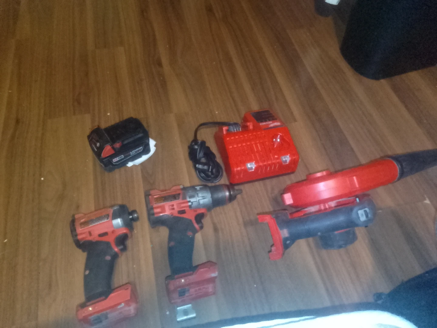 Includes a Milwaukee M18 lithium-ion battery and charger. This cordless drill, impact driver, and blower are ready for your next project. Great for various DIY tasks!