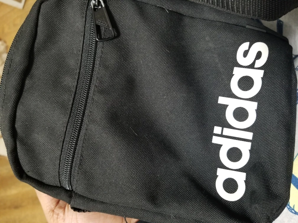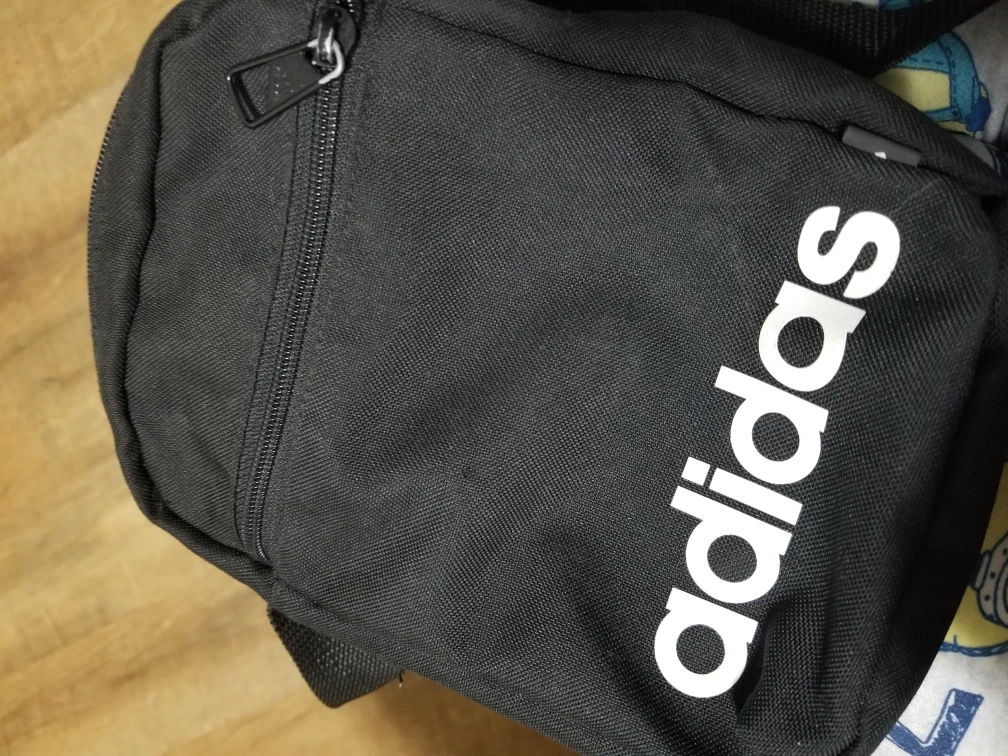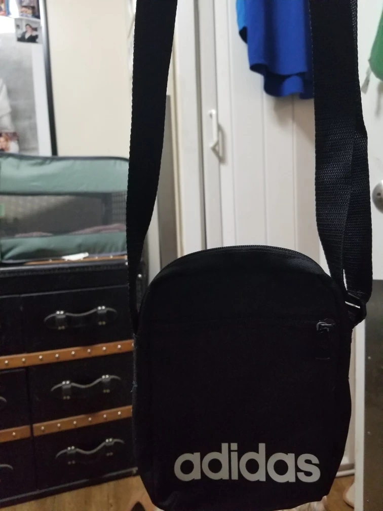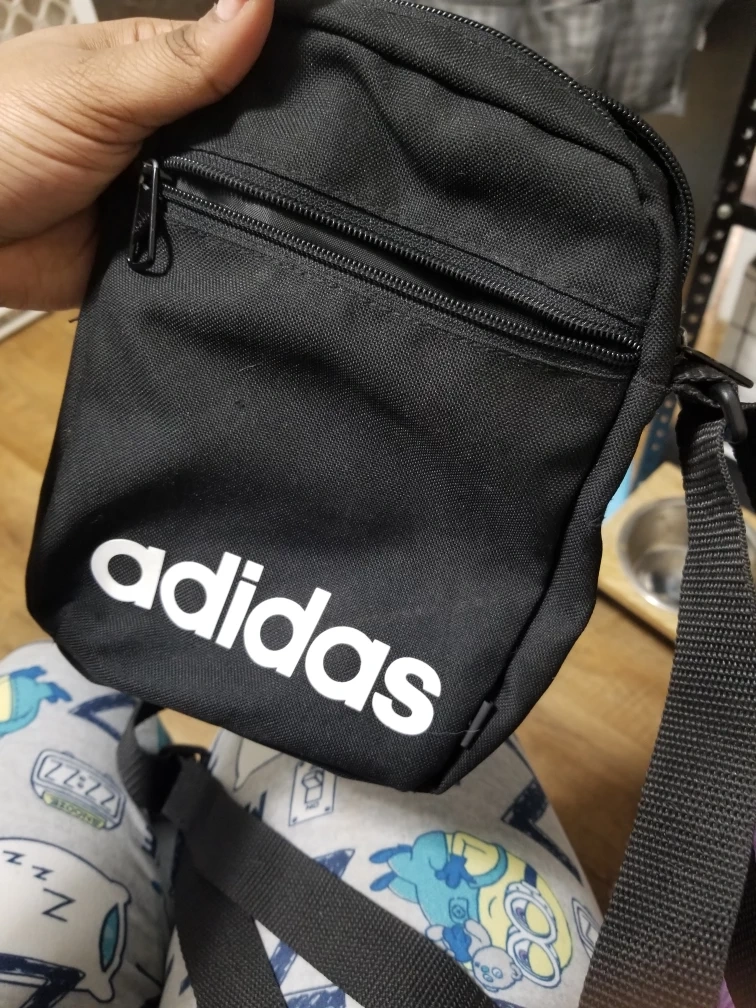 Small Adidas crossbody bag. Black with white Adidas logo. Adjustable shoulder strap. Zipper closure. Perfect for everyday use.