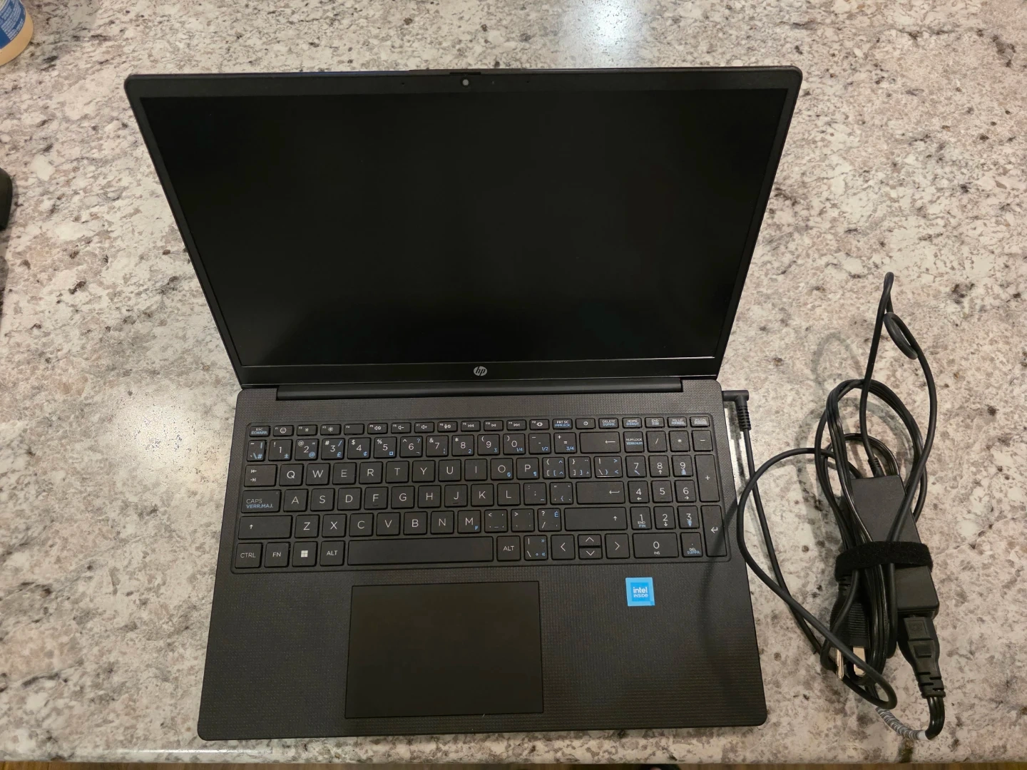 This is an HP laptop with an Intel Core i3 processor. It includes the power adapter. It's ready for your daily tasks! Purchased for $425