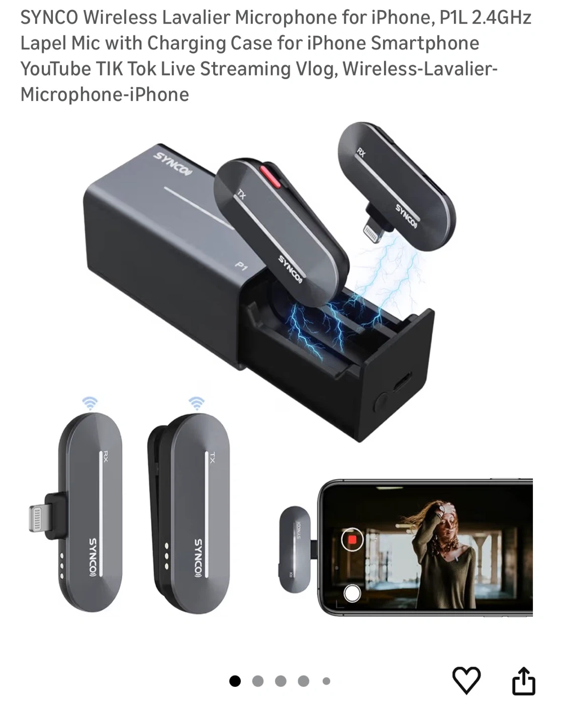 SYNCO Wireless Lavalier Microphone for iPhone, P1L 2.4GHz Lapel Mic with Charging Case for iPhone Smartphone YouTube TIK Tok Live Streaming Vlog, Wireless-Lavalier-Microphone-iPhone