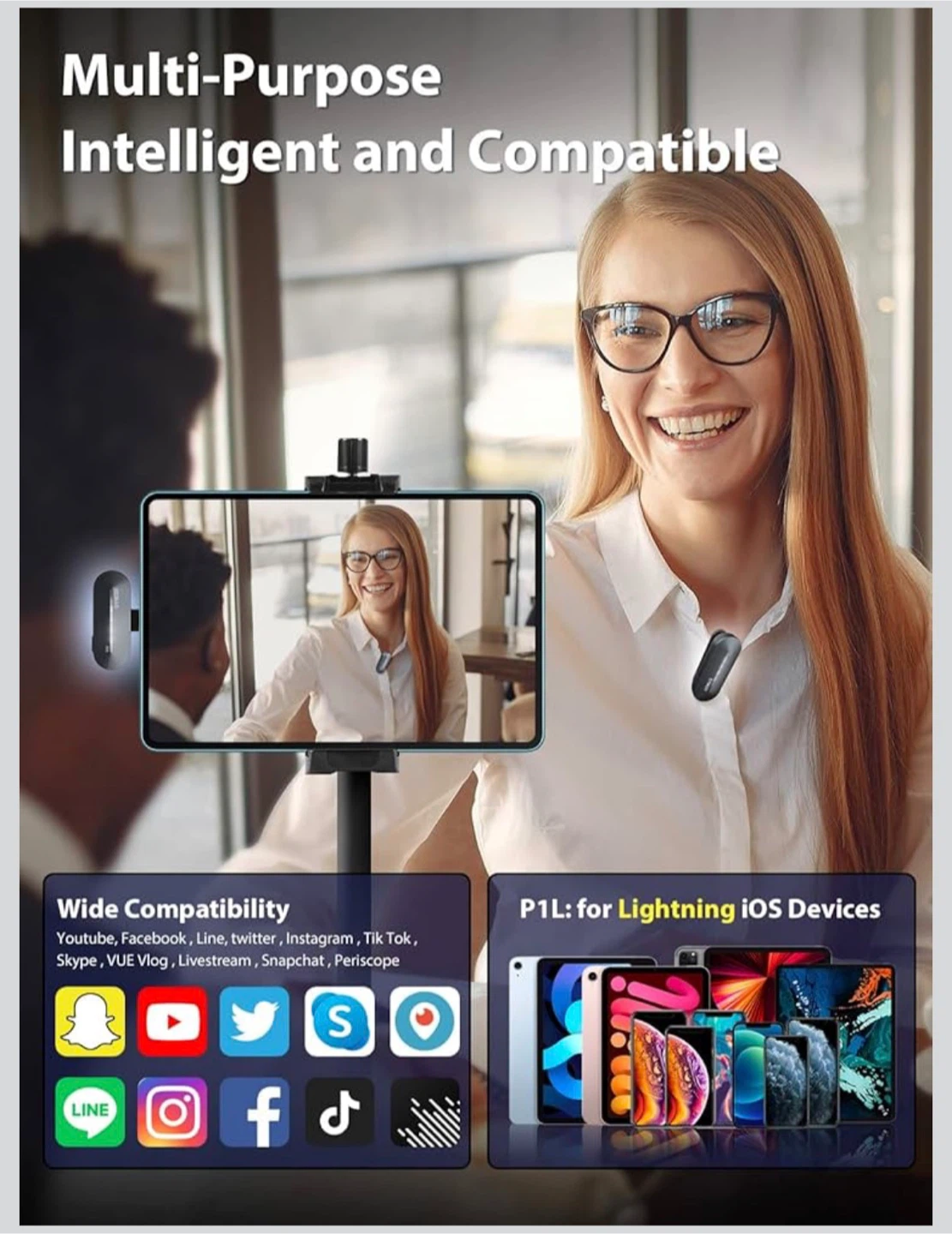 SYNCO Wireless Lavalier Microphone for iPhone, P1L 2.4GHz Lapel Mic with Charging Case for iPhone Smartphone YouTube TIK Tok Live Streaming Vlog, Wireless-Lavalier-Microphone-iPhone
