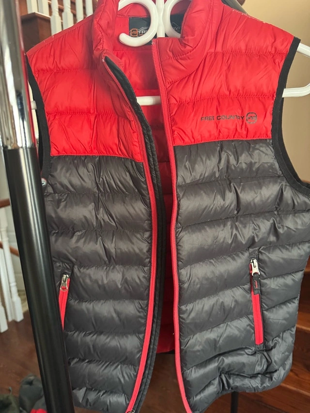 All like new! Blue vest size large (10-12) $20. Red and black vest size XL (14-16) $20. Fleece lined water repellent jacket size large (10-12) $20.