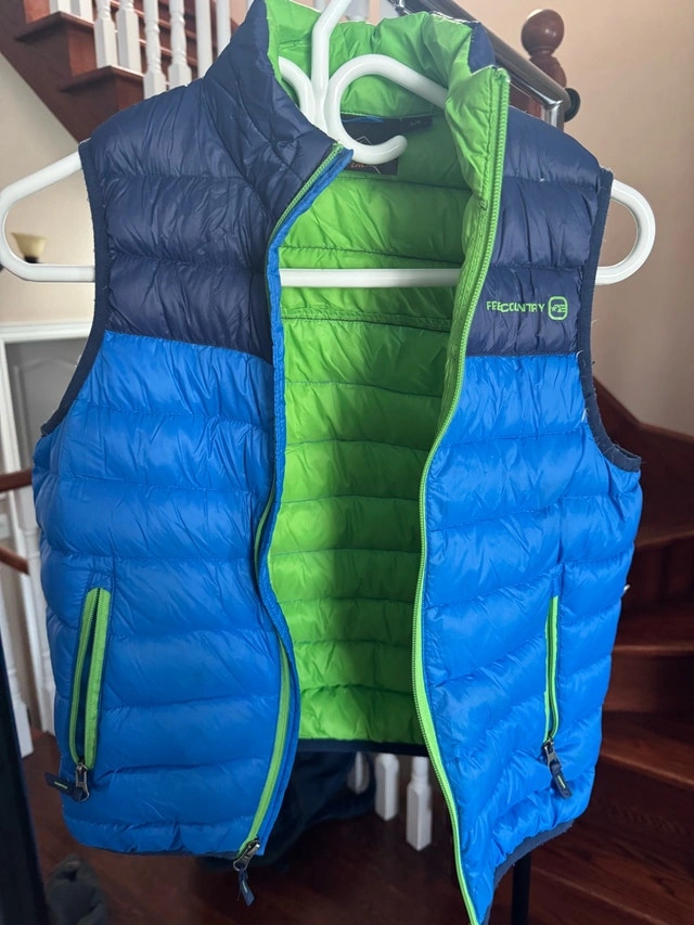 All like new! Blue vest size large (10-12) $20. Red and black vest size XL (14-16) $20. Fleece lined water repellent jacket size large (10-12) $20.
