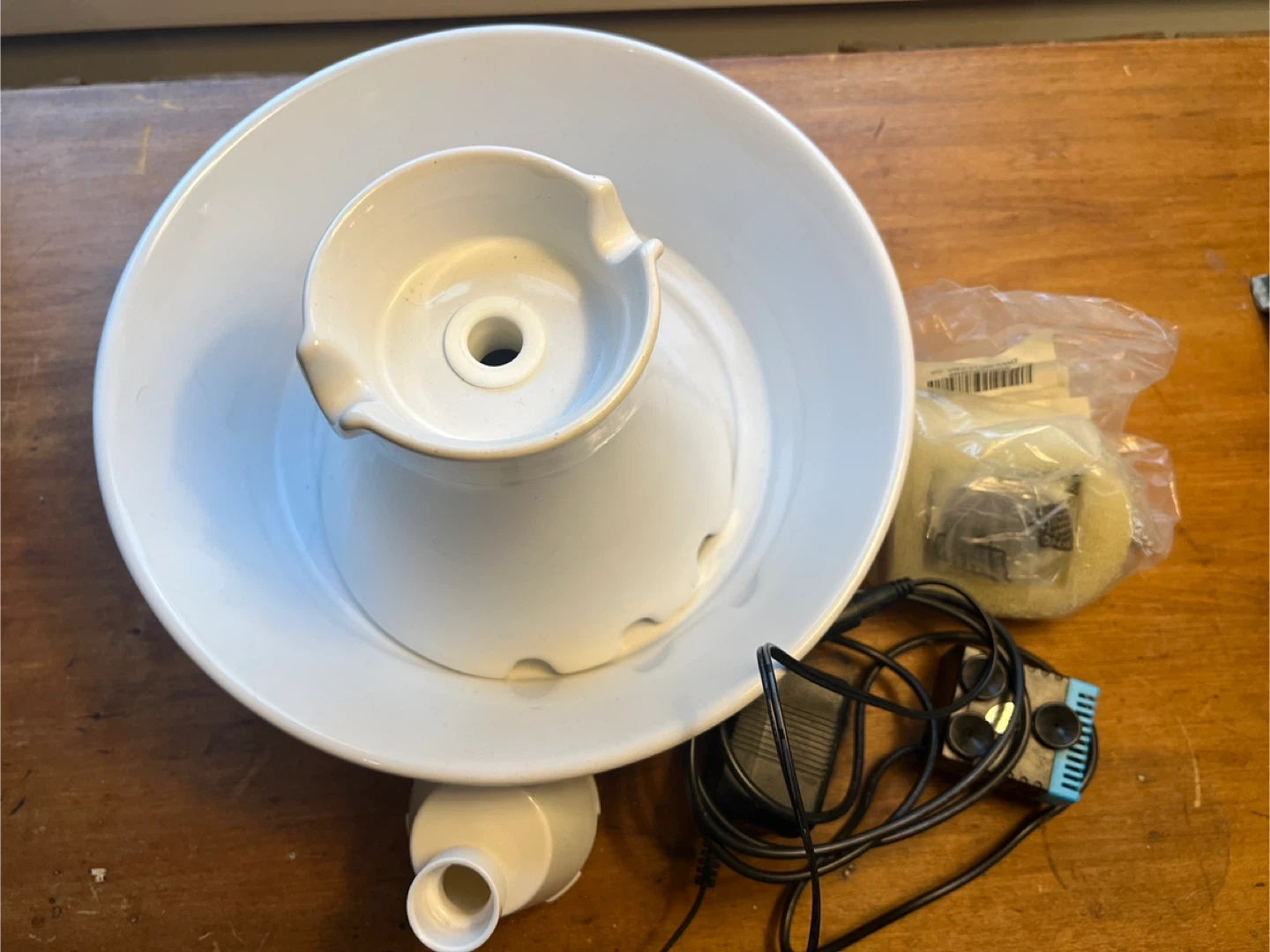 Drinkwell white ceramic pet fountain-broken maybe you can glue it.. It includes the pump, filter, and all the necessary components to keep your furry friend hydrated.