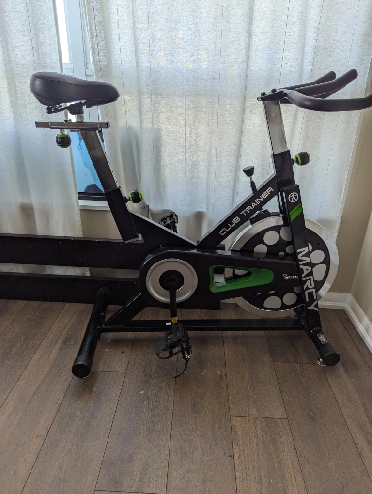 Selling a Marcy Club Trainer exercise bike. It's in good condition and ready for a new home! The seat shows some signs of wear, but it's still perfectly functional