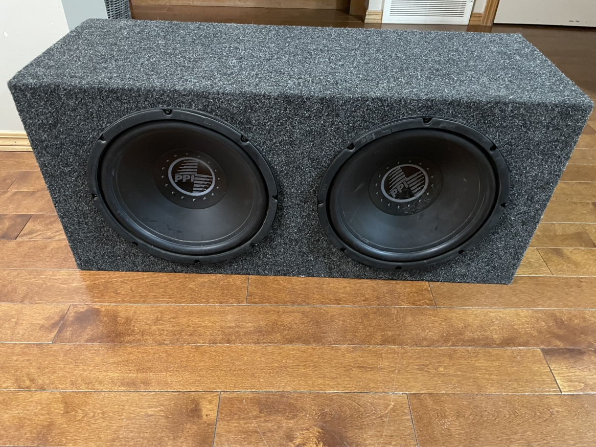 Selling my two 12 inch PPI subwoofers in a custom box.