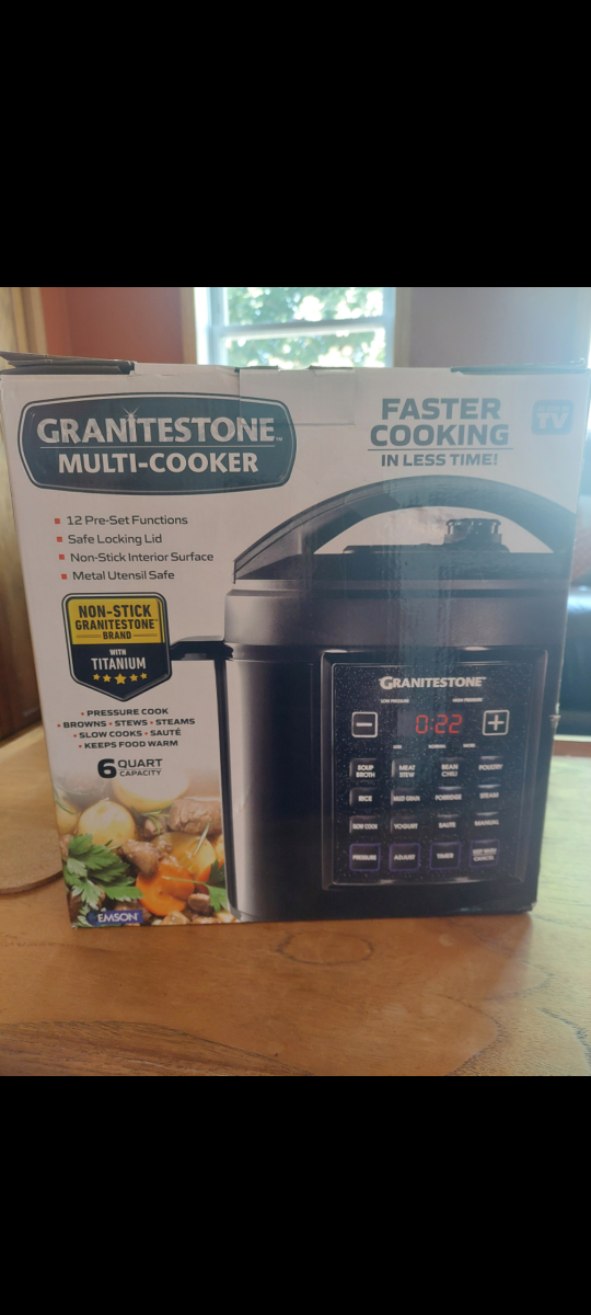 1 / 11 / 1Buy & SellGranitestone Multi-Cooker Brand NewGranitestone Multi-Cooker Brand New$756 quart capacity. 12 pre-set functions. Non-stick interior surface. Metal utensil safe. Features a safe locking lid. brand new still in the boxConditionNewWHERE TO MEETCorner of Headon and Jordon West SideView MapSELLERverifiedanneHeadon Forest23919 reviews2 chats·1 favorites·33 viewsSEND CHAT TO SELLERHi anne! I’m interested in your listing.Hi anne! I’m interested in your listing.Get the Karrot app to chatSign In to chat