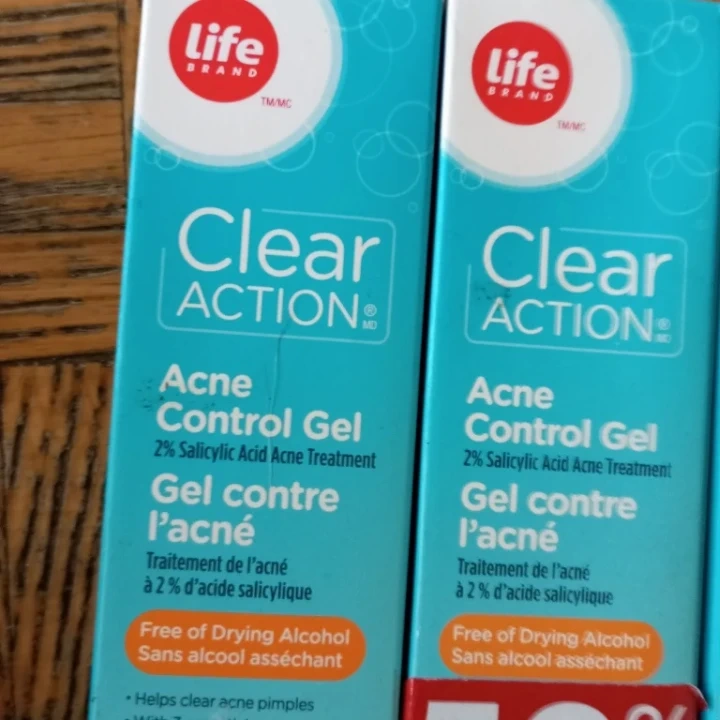 Four tubes of Life Brand Clear Action Acne Control Gel.