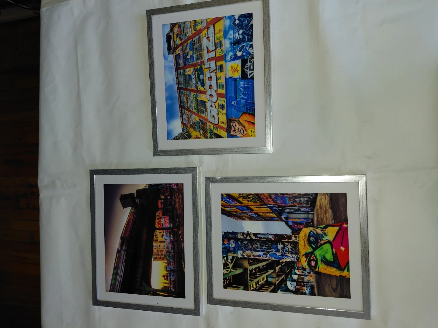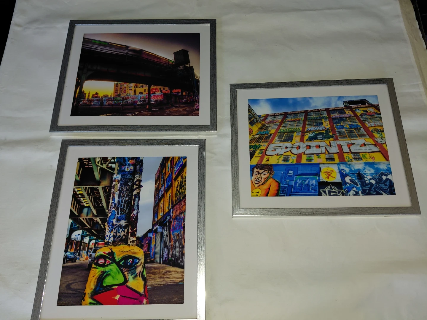This collection features seven framed art prints. Four prints showcase New York City skylines and bridges, while three display vibrant graffiti art. They're perfect for adding urban flair to any space!. Selling sets of 10 original photos of historic NYC pregramed photos. The original Art work is for sake also at a higher price point but negotiable. This guy is the next best thing keep an eye out for this Artist!.