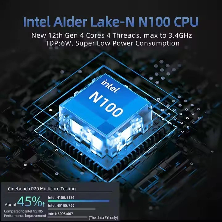 β’ CPU: Intel N100 (4 cores, 3.4GHz burst)