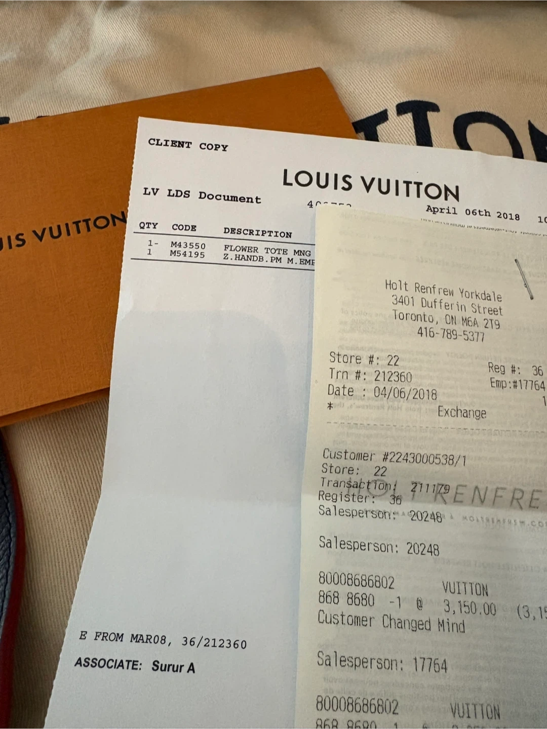 Selling a Louis Vuitton Flower Tote bag. It's in excellent condition as it’s barely been used and comes with the original dust bag. The receipt shows it was purchased 2018.