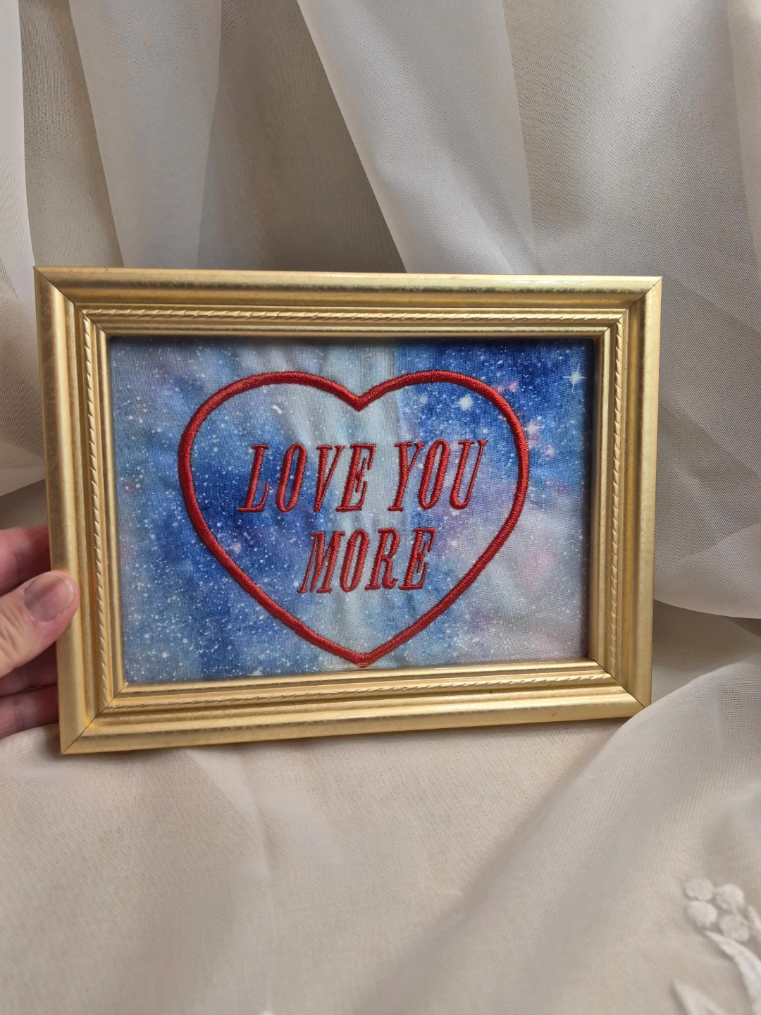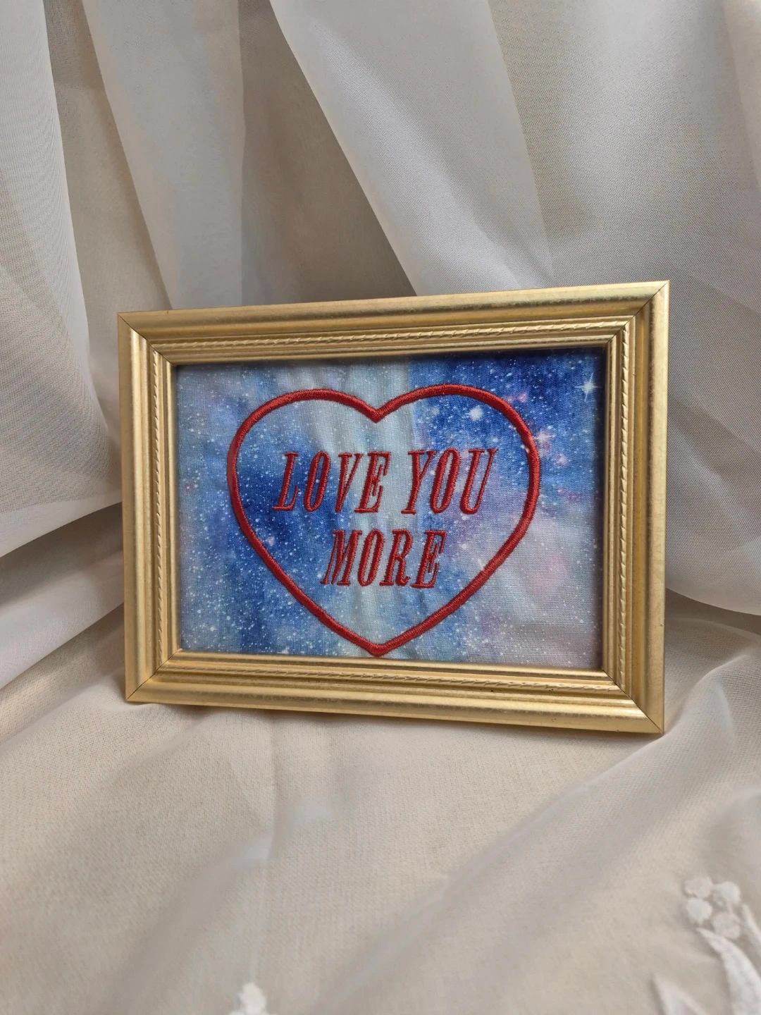 Love You More Framed Embroidered 5x7 Wall Decor - Excellent Condition please see all pictures