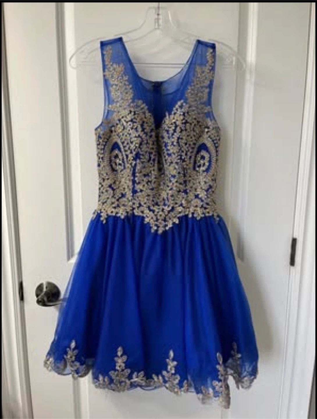 Rianna Couture Blue & Gold Beaded Dress Size 4
